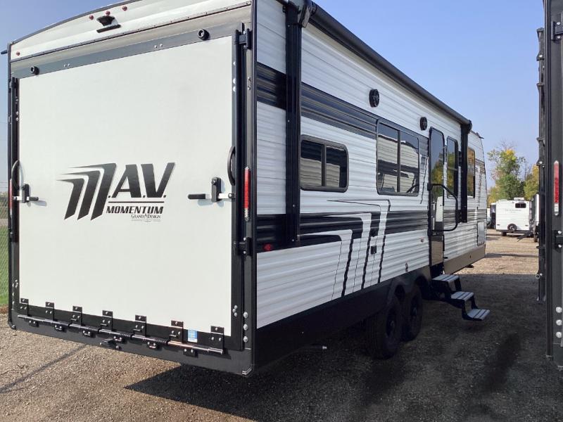 Built for thrill-seekers who want comfort and cargo space, the 2026 Momentum MAV 27MAV blends rugged functionality with Grand Design’s quality interior finishes. With room for your toys and all the comforts of home, this travel trailer toy hauler is ready for your next off-grid adventure or weekend getaway.