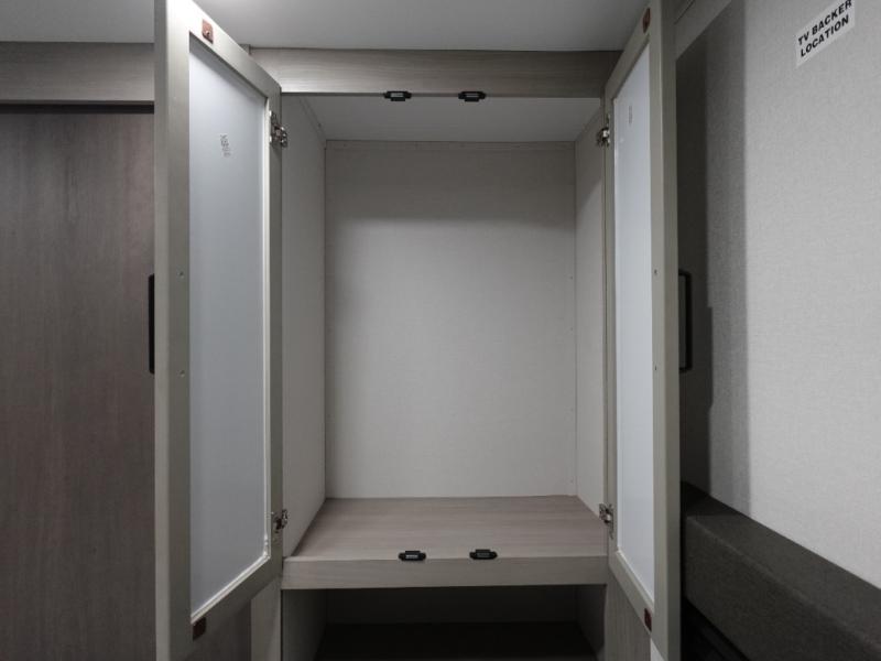 The Momentum MAV toy hauler travel trailers by Grand Design are designed to provide exactly what you need. The spacious garage provides tons of cargo space, with no wheel wells to get in the way. Additional storage includes magnetic storage door catches, and overhead consoles throughout. Conveniences like motion sensor lights and USB outlets will make your life easier, and you will be comfortable in all seasons with the 30K BTU furnace plus 15K BTU ducted air conditioning. The standard Solar Package comes with a 180W solar panel, a 40 Amp charge controller with Bluetooth, and a 12V refrigerator so you can go off-grid when the adventure calls for it.