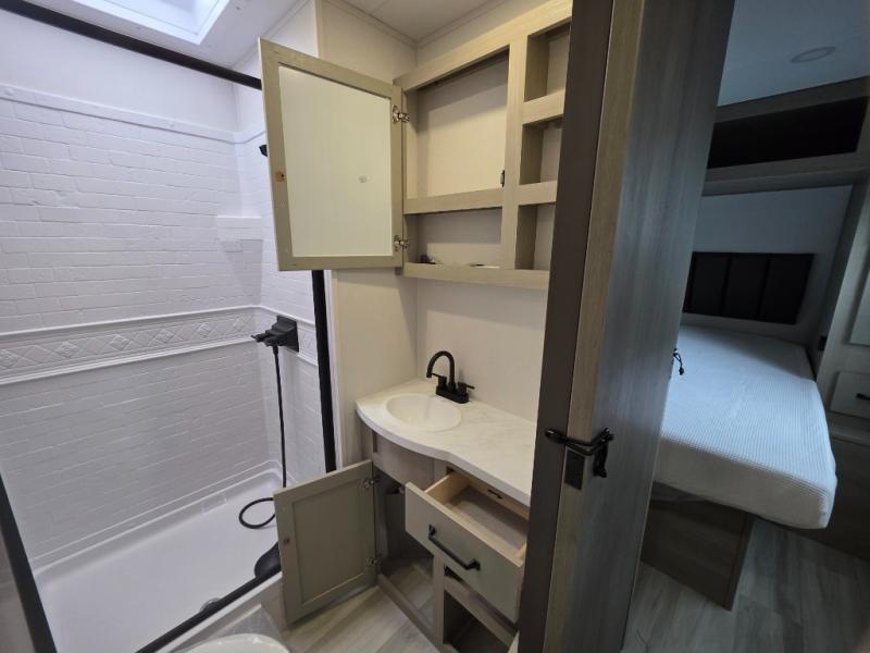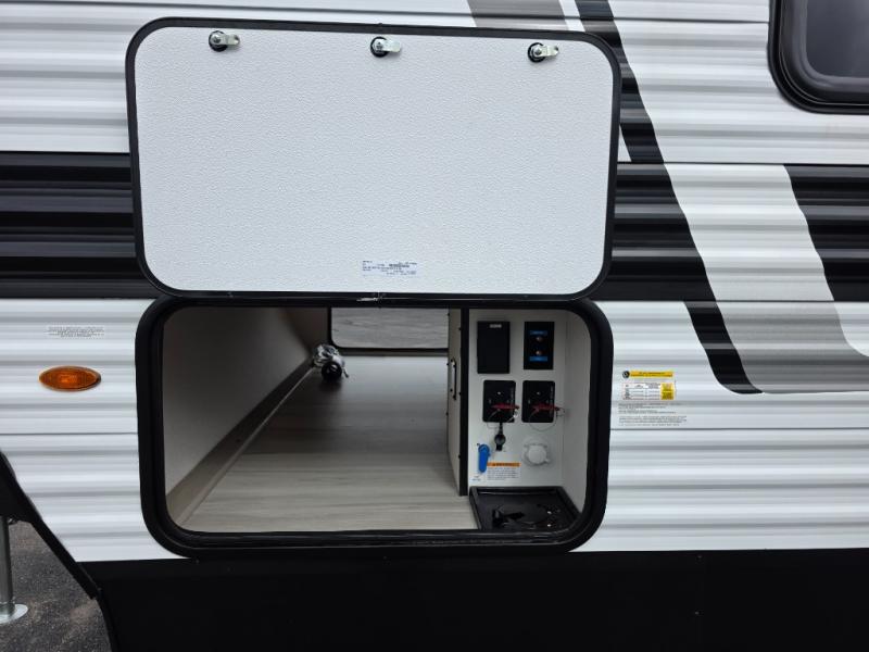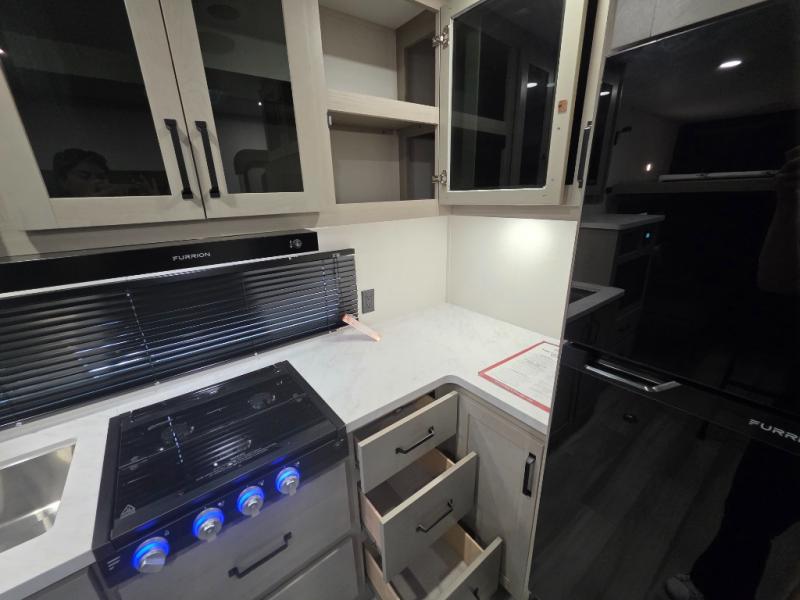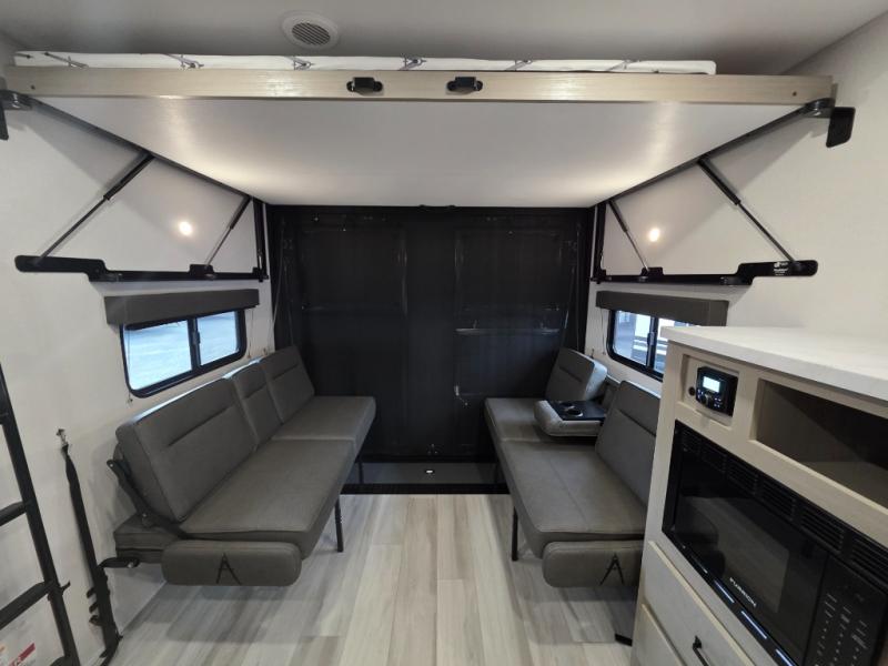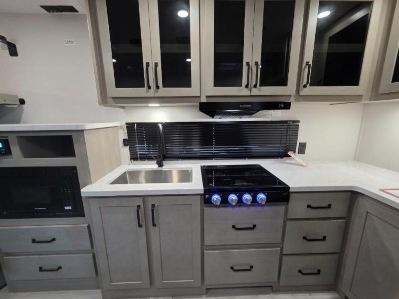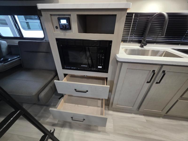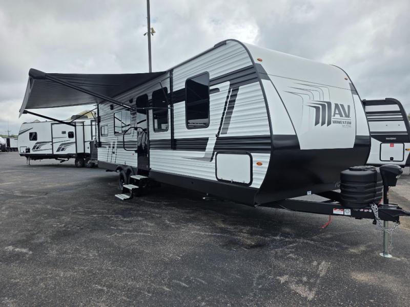 The Momentum MAV toy hauler travel trailers by Grand Design are designed to provide exactly what you need. The spacious garage provides tons of cargo space, with no wheel wells to get in the way. Additional storage includes magnetic storage door catches, and overhead consoles throughout. Conveniences like motion sensor lights and USB outlets will make your life easier, and you will be comfortable in all seasons with the 30K BTU furnace plus 15K BTU ducted air conditioning. The standard Solar Package comes with a 180W solar panel, a 40 Amp charge controller with Bluetooth, and a 12V refrigerator so you can go off-grid when the adventure calls for it.