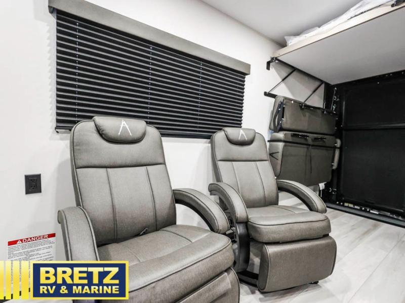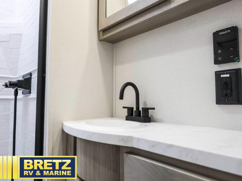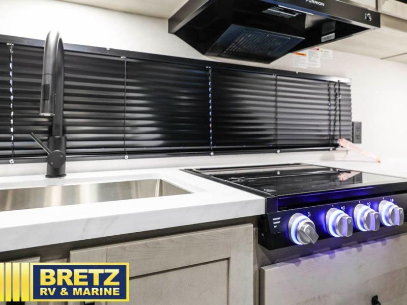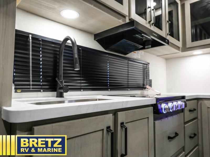 The Momentum MAV toy hauler travel trailers by Grand Design are designed to provide exactly what you need. The spacious garage provides tons of cargo space, with no wheel wells to get in the way. Additional storage includes magnetic storage door catches, and overhead consoles throughout. Conveniences like motion sensor lights and USB outlets will make your life easier, and you will be comfortable in all seasons with the 30K BTU furnace plus 15K BTU ducted air conditioning. The standard Solar Package comes with a 180W solar panel, a 40 Amp charge controller with Bluetooth, and a 12V refrigerator so you can go off-grid when the adventure calls for it.