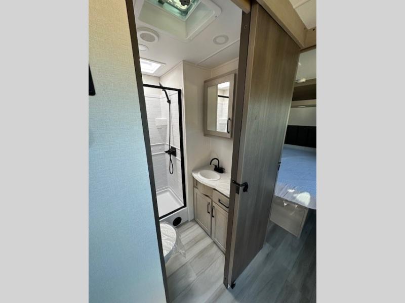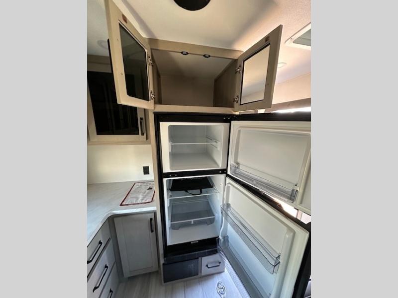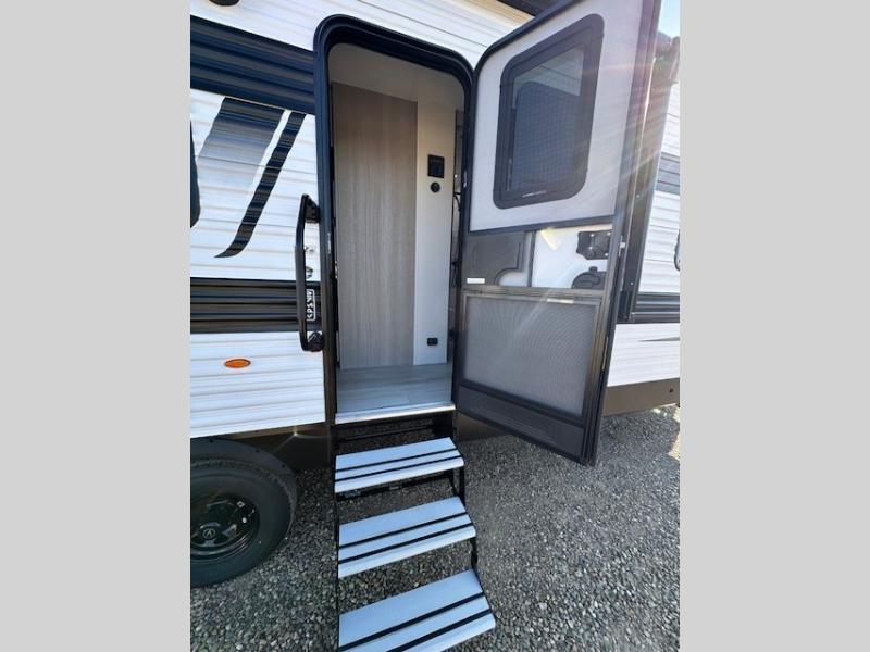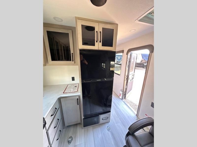 The Momentum MAV toy hauler travel trailers by Grand Design are designed to provide exactly what you need. The spacious garage provides tons of cargo space, with no wheel wells to get in the way. Additional storage includes magnetic storage door catches, and overhead consoles throughout. Conveniences like motion sensor lights and USB outlets will make your life easier, and you will be comfortable in all seasons with the 30K BTU furnace plus 15K BTU ducted air conditioning. The standard Solar Package comes with a 180W solar panel, a 40 Amp charge controller with Bluetooth, and a 12V refrigerator so you can go off-grid when the adventure calls for it.