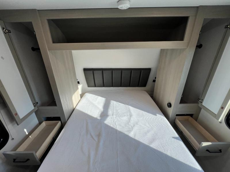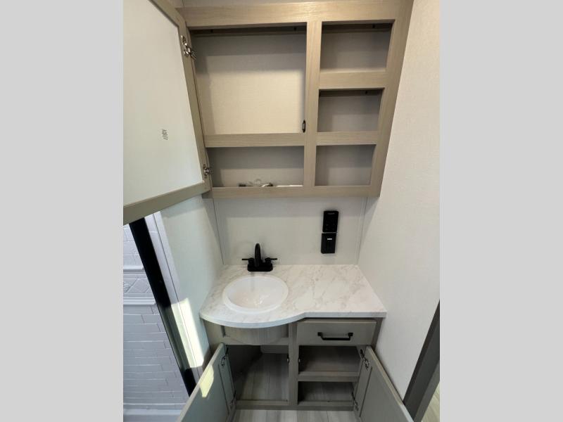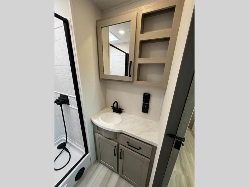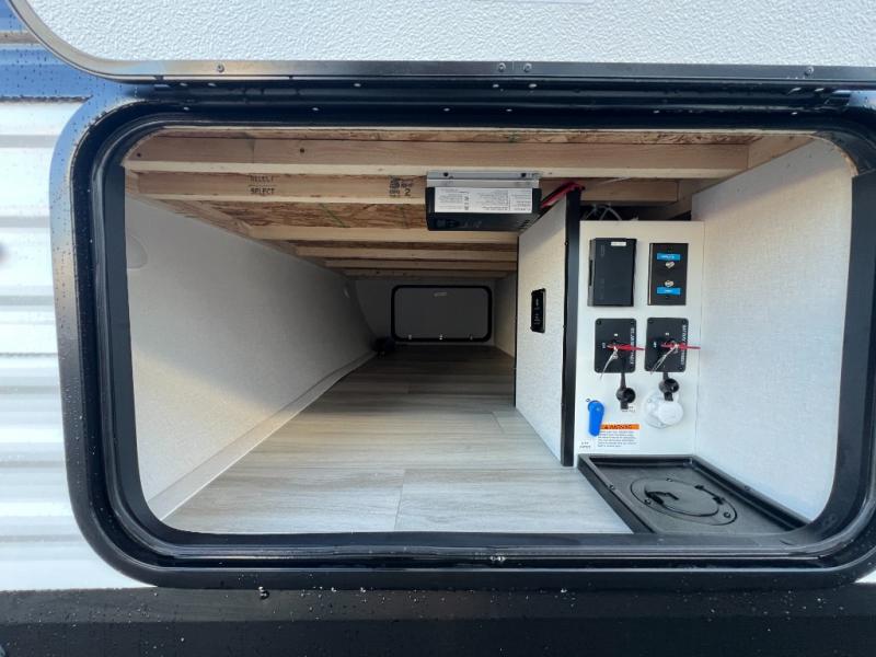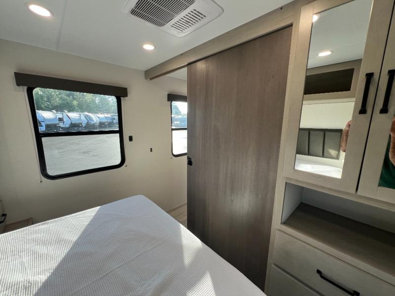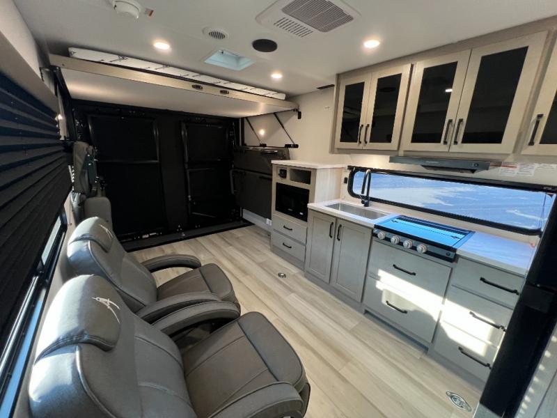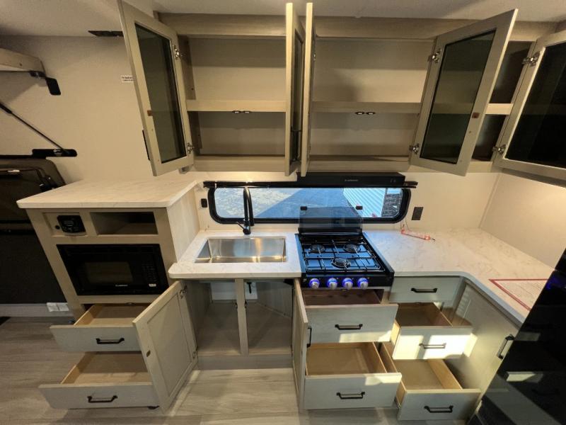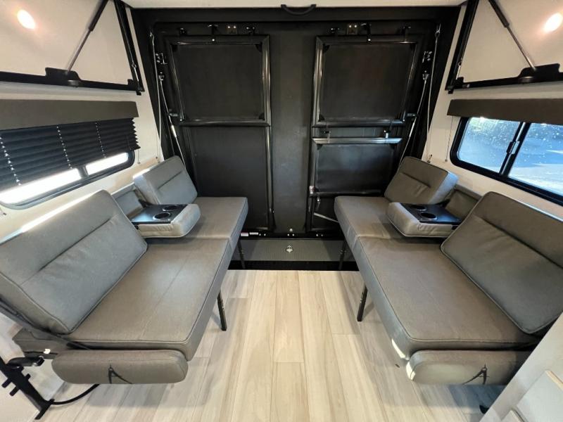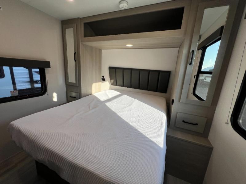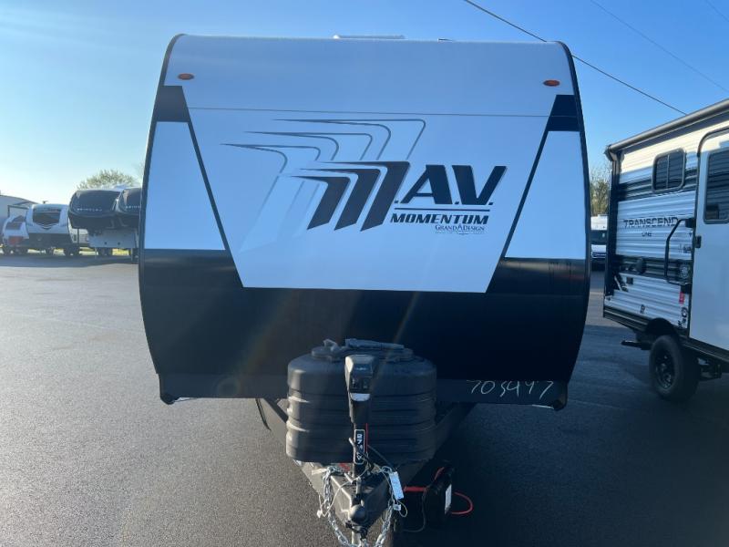The Momentum MAV toy hauler travel trailers by Grand Design are designed to provide exactly what you need. The spacious garage provides tons of cargo space, with no wheel wells to get in the way. Additional storage includes magnetic storage door catches, and overhead consoles throughout. Conveniences like motion sensor lights and USB outlets will make your life easier, and you will be comfortable in all seasons with the 30K BTU furnace plus 15K BTU ducted air conditioning. The standard Solar Package comes with a 180W solar panel, a 40 Amp charge controller with Bluetooth, and a 12V refrigerator so you can go off-grid when the adventure calls for it.