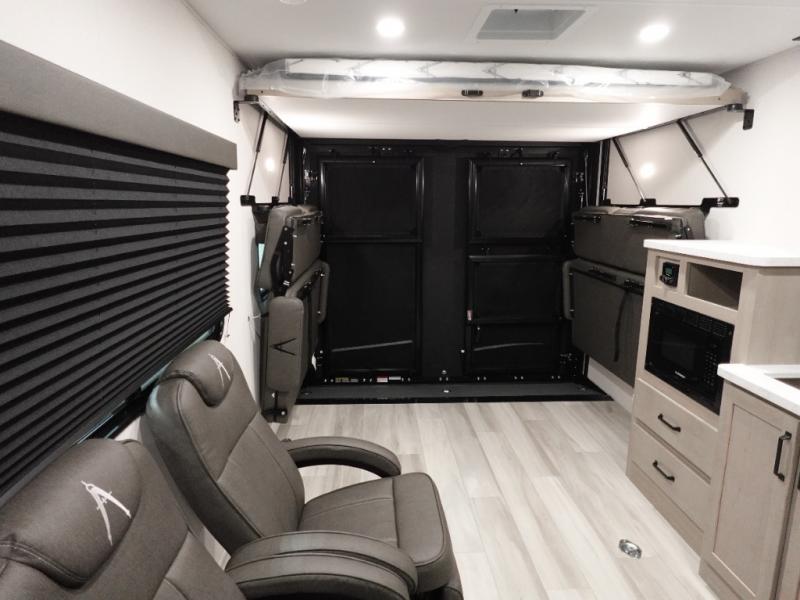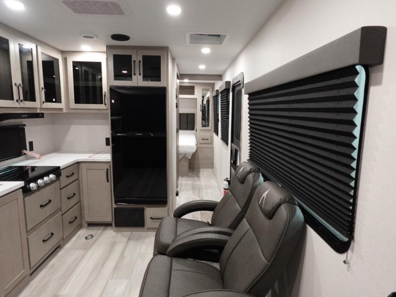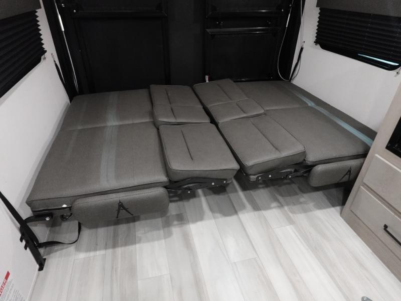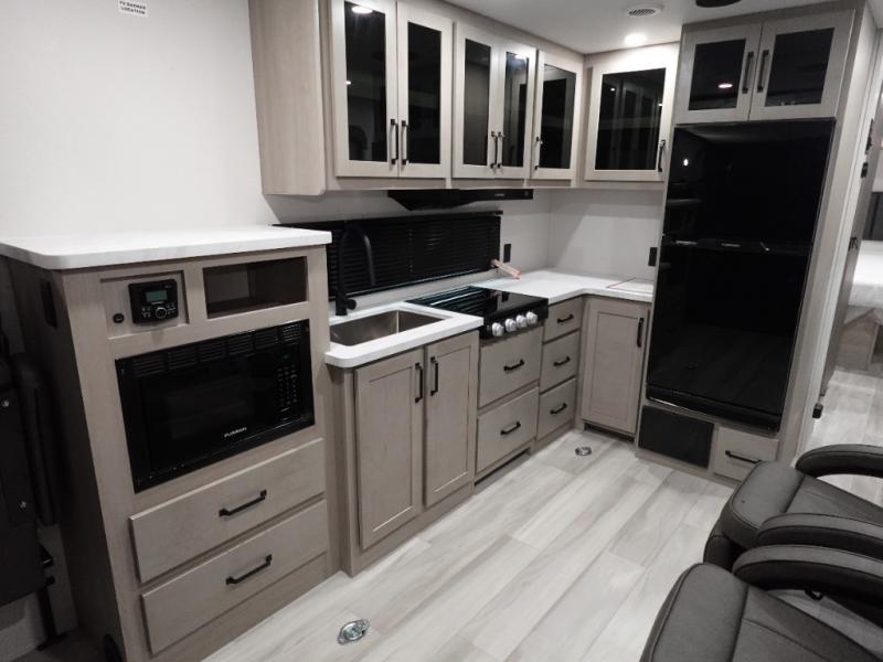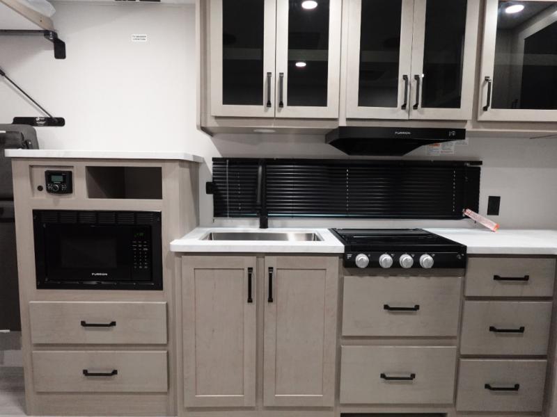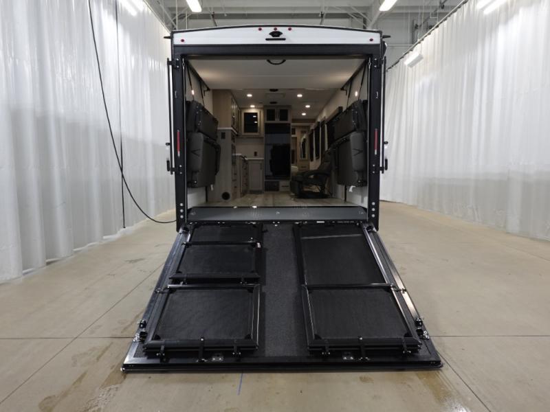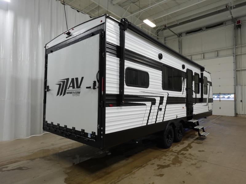 The Momentum MAV toy hauler travel trailers by Grand Design are designed to provide exactly what you need. The spacious garage provides tons of cargo space, with no wheel wells to get in the way. Additional storage includes magnetic storage door catches, and overhead consoles throughout. Conveniences like motion sensor lights and USB outlets will make your life easier, and you will be comfortable in all seasons with the 30K BTU furnace plus 15K BTU ducted air conditioning. The standard Solar Package comes with a 180W solar panel, a 40 Amp charge controller with Bluetooth, and a 12V refrigerator so you can go off-grid when the adventure calls for it.