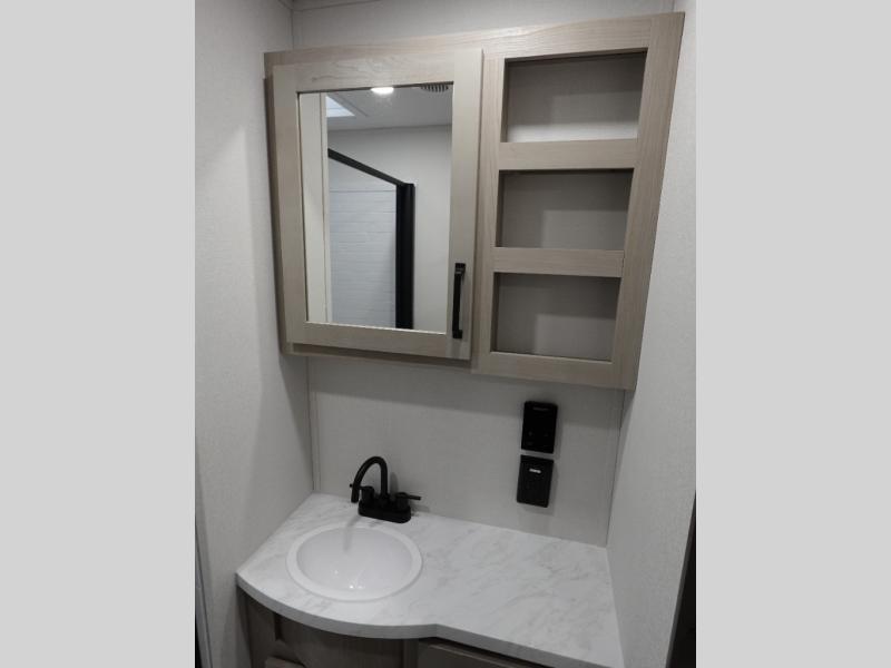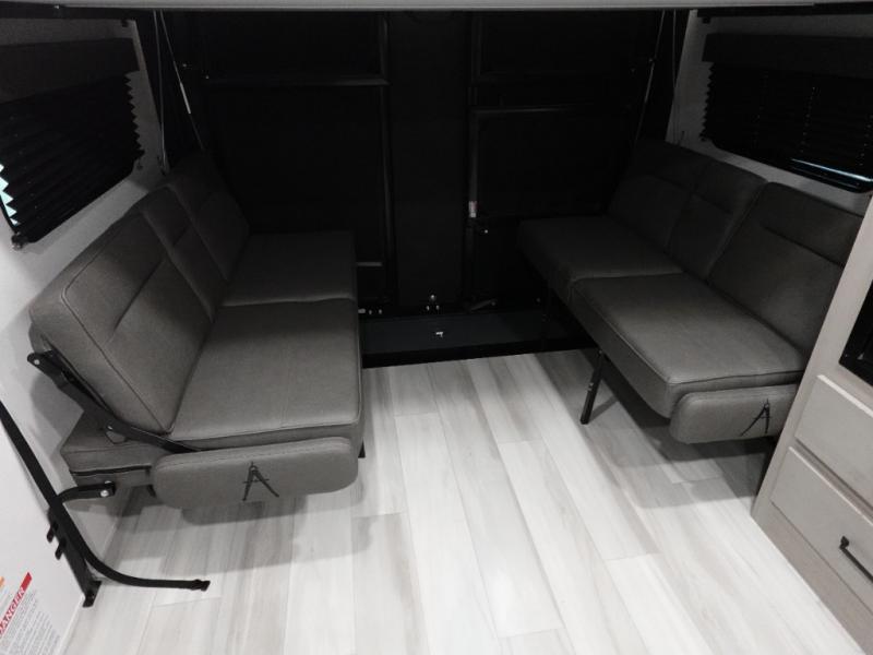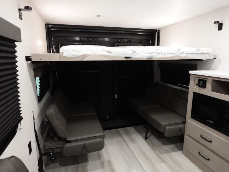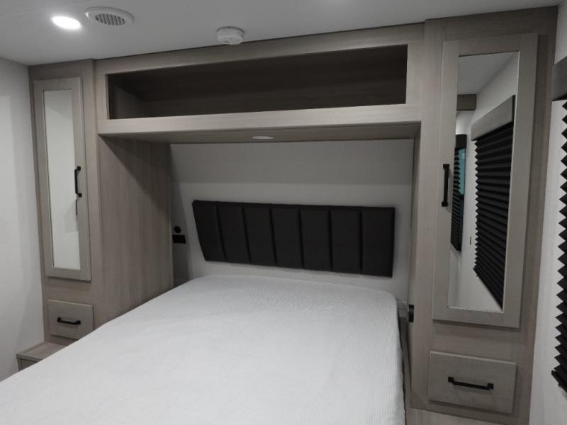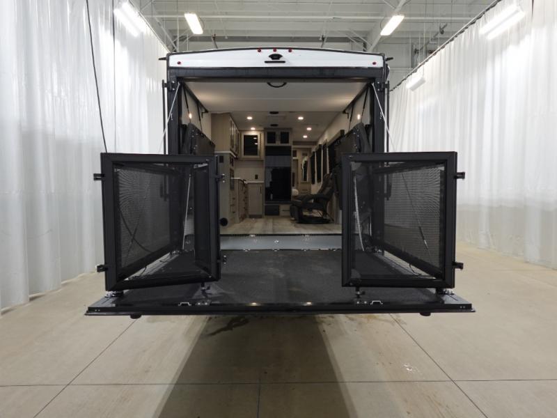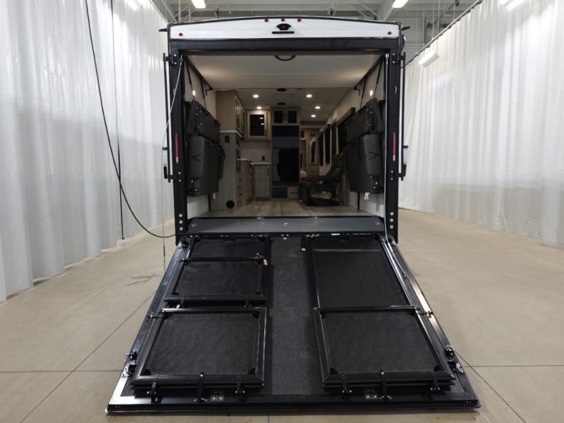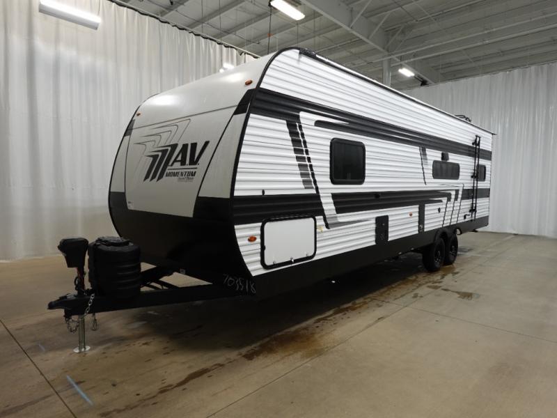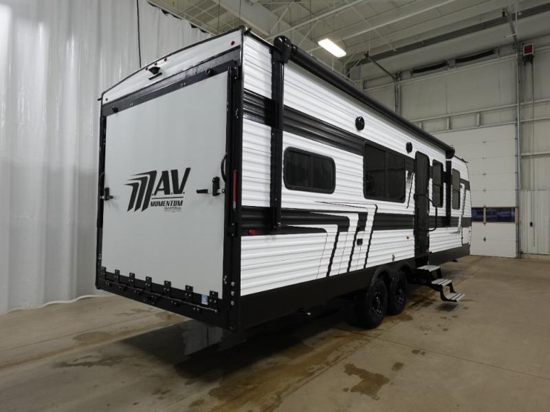 The Momentum MAV toy hauler travel trailers by Grand Design are designed to provide exactly what you need. The spacious garage provides tons of cargo space, with no wheel wells to get in the way. Additional storage includes magnetic storage door catches, and overhead consoles throughout. Conveniences like motion sensor lights and USB outlets will make your life easier, and you will be comfortable in all seasons with the 30K BTU furnace plus 15K BTU ducted air conditioning. The standard Solar Package comes with a 180W solar panel, a 40 Amp charge controller with Bluetooth, and a 12V refrigerator so you can go off-grid when the adventure calls for it.