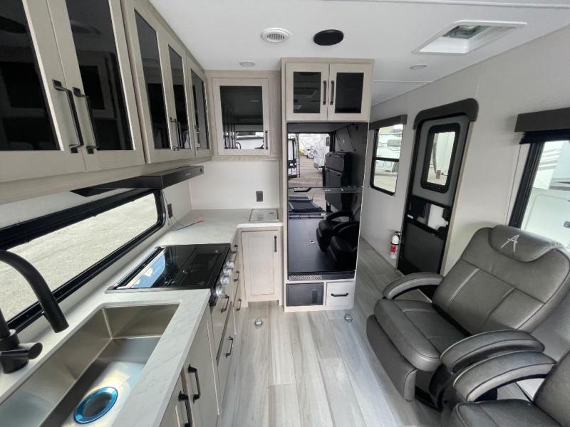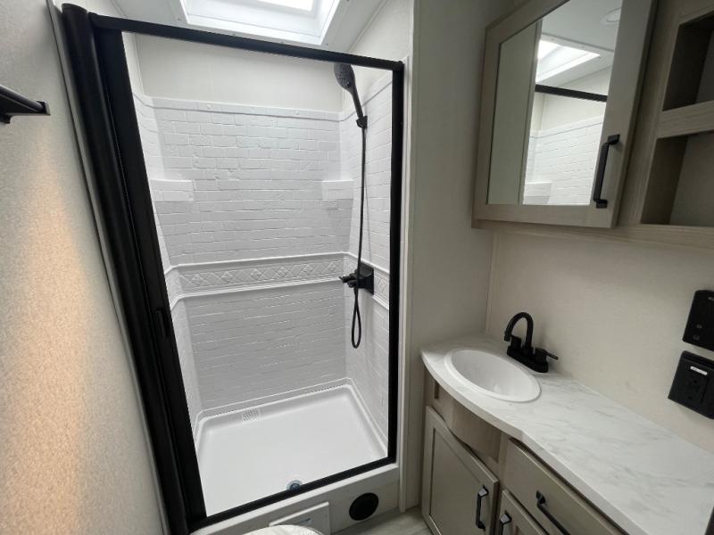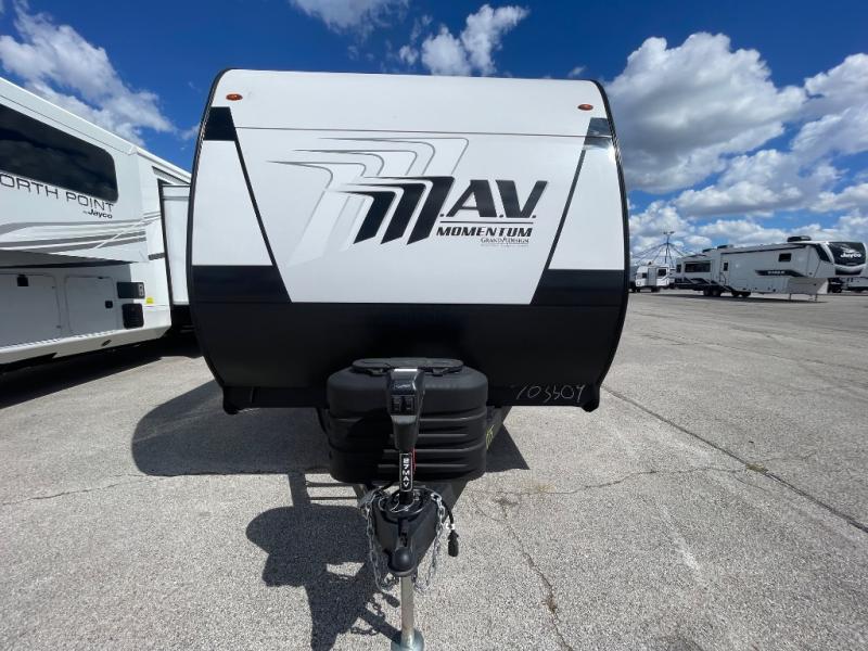 The Momentum MAV toy hauler travel trailers by Grand Design are designed to provide exactly what you need. The spacious garage provides tons of cargo space, with no wheel wells to get in the way. Additional storage includes magnetic storage door catches, and overhead consoles throughout. Conveniences like motion sensor lights and USB outlets will make your life easier, and you will be comfortable in all seasons with the 30K BTU furnace plus 15K BTU ducted air conditioning. The standard Solar Package comes with a 180W solar panel, a 40 Amp charge controller with Bluetooth, and a 12V refrigerator so you can go off-grid when the adventure calls for it.