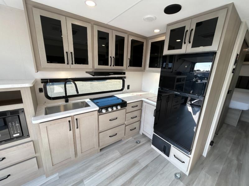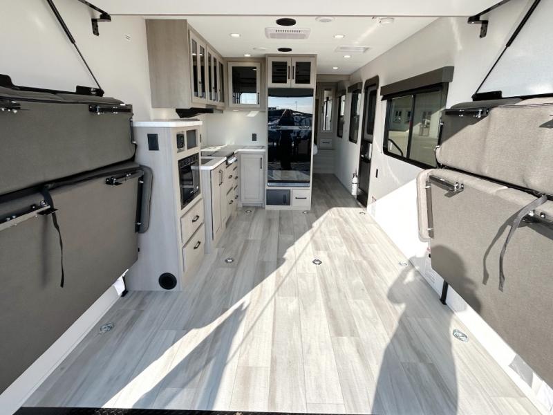 The Momentum MAV toy hauler travel trailers by Grand Design are designed to provide exactly what you need. The spacious garage provides tons of cargo space, with no wheel wells to get in the way. Additional storage includes magnetic storage door catches, and overhead consoles throughout. Conveniences like motion sensor lights and USB outlets will make your life easier, and you will be comfortable in all seasons with the 30K BTU furnace plus 15K BTU ducted air conditioning. The standard Solar Package comes with a 180W solar panel, a 40 Amp charge controller with Bluetooth, and a 12V refrigerator so you can go off-grid when the adventure calls for it.