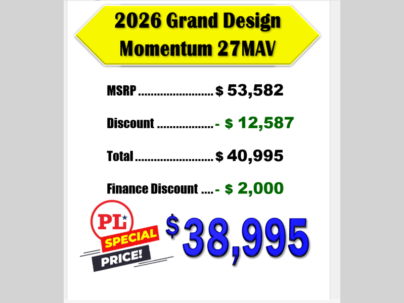 New 2026 Grand Design Momentum MAV 27MAV Toy Hauler Travel Trailer