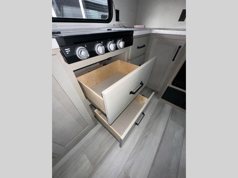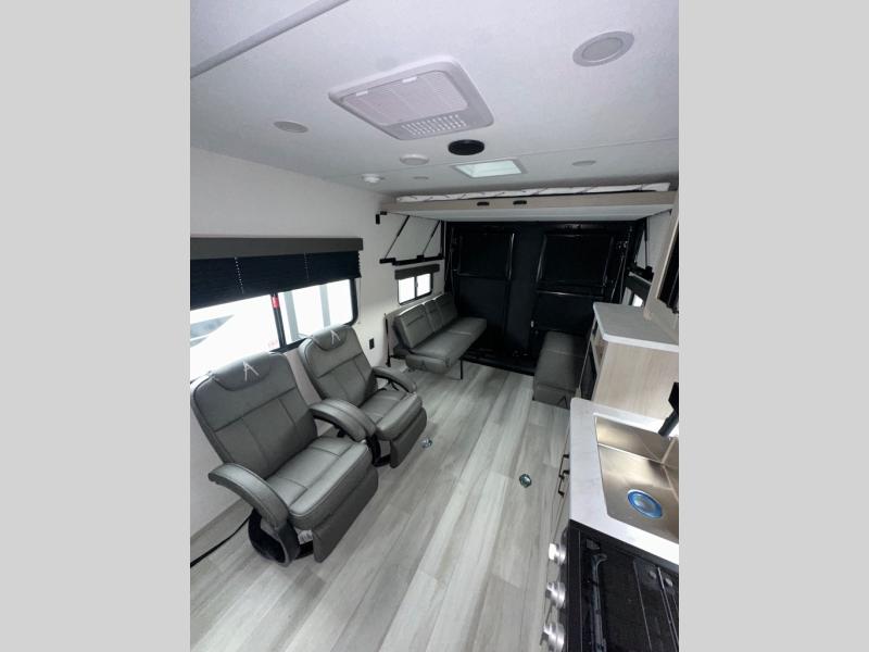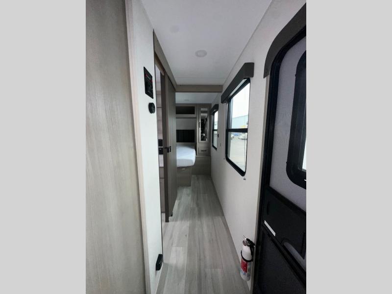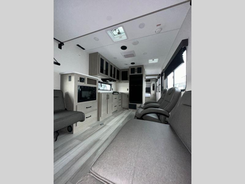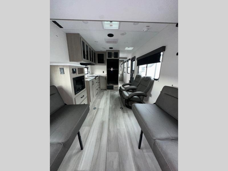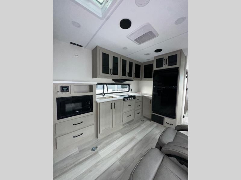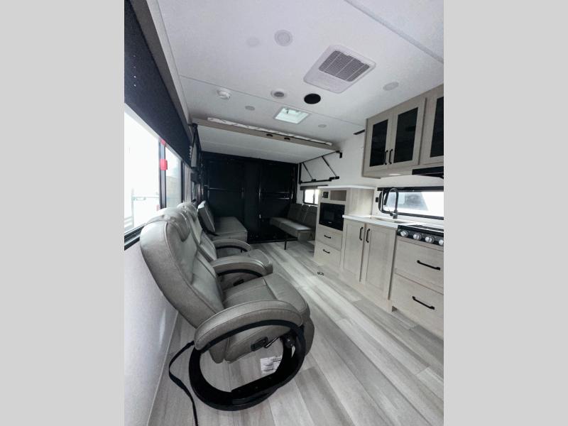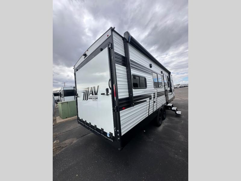 The Momentum MAV toy hauler travel trailers by Grand Design are designed to provide exactly what you need. The spacious garage provides tons of cargo space, with no wheel wells to get in the way. Additional storage includes magnetic storage door catches, and overhead consoles throughout. Conveniences like motion sensor lights and USB outlets will make your life easier, and you will be comfortable in all seasons with the 30K BTU furnace plus 15K BTU ducted air conditioning. The standard Solar Package comes with a 180W solar panel, a 40 Amp charge controller with Bluetooth, and a 12V refrigerator so you can go off-grid when the adventure calls for it.