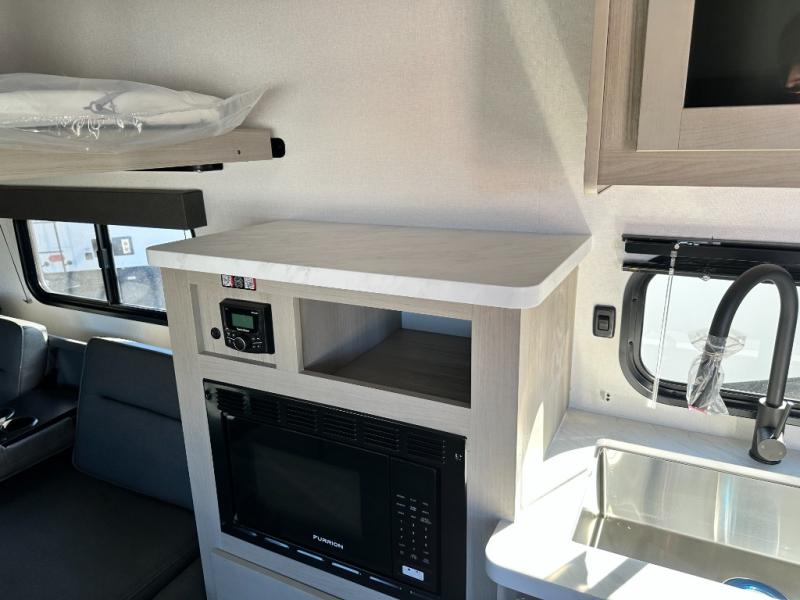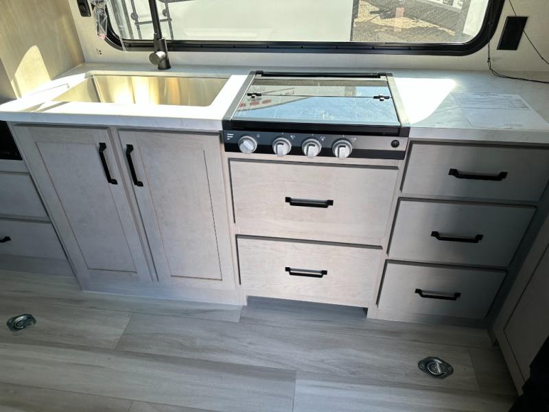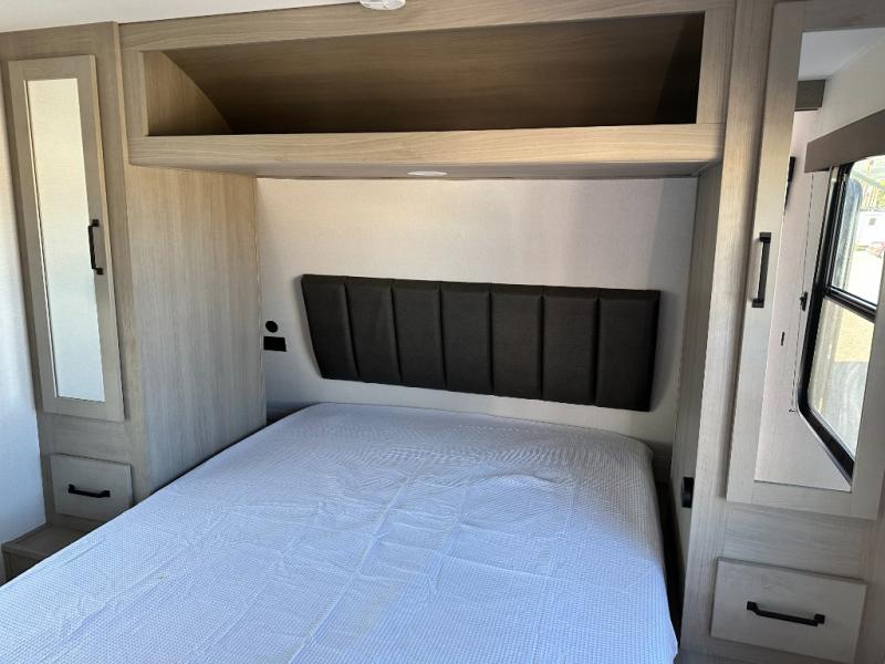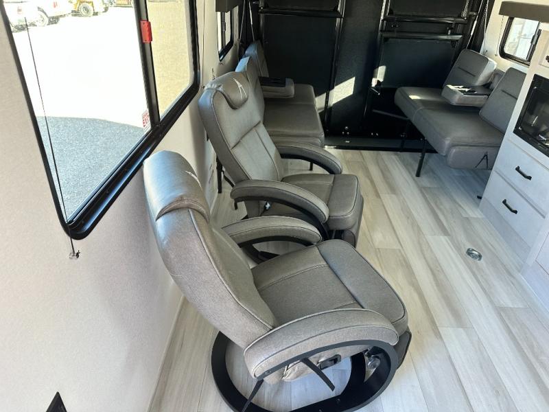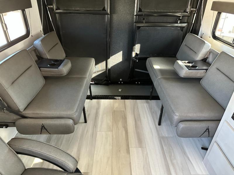 The Momentum MAV toy hauler travel trailers by Grand Design are designed to provide exactly what you need. The spacious garage provides tons of cargo space, with no wheel wells to get in the way. Additional storage includes magnetic storage door catches, and overhead consoles throughout. Conveniences like motion sensor lights and USB outlets will make your life easier, and you will be comfortable in all seasons with the 30K BTU furnace plus 15K BTU ducted air conditioning. The standard Solar Package comes with a 180W solar panel, a 40 Amp charge controller with Bluetooth, and a 12V refrigerator so you can go off-grid when the adventure calls for it.