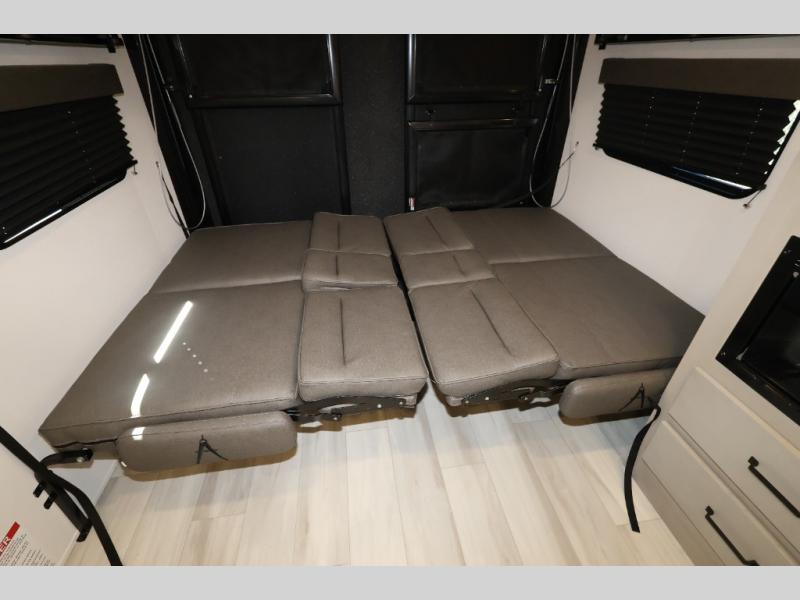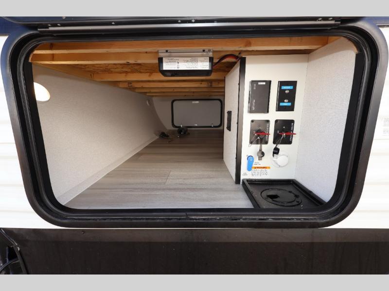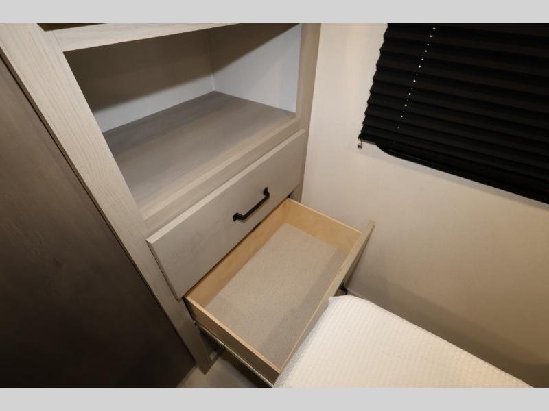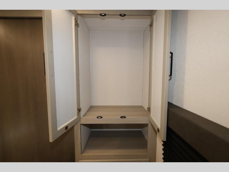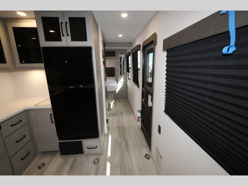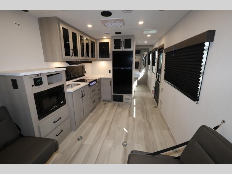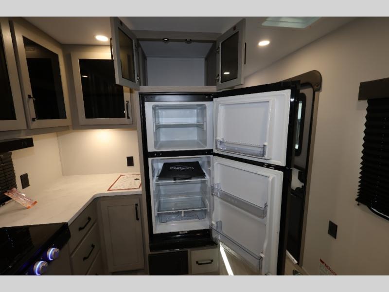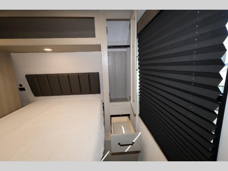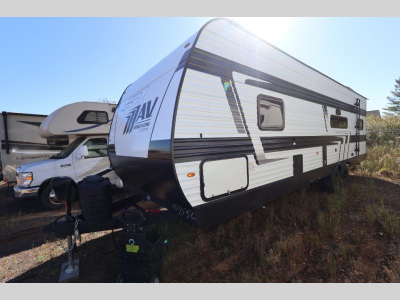 The Momentum MAV toy hauler travel trailers by Grand Design are designed to provide exactly what you need. The spacious garage provides tons of cargo space, with no wheel wells to get in the way. Additional storage includes magnetic storage door catches, and overhead consoles throughout. Conveniences like motion sensor lights and USB outlets will make your life easier, and you will be comfortable in all seasons with the 30K BTU furnace plus 15K BTU ducted air conditioning. The standard Solar Package comes with a 180W solar panel, a 40 Amp charge controller with Bluetooth, and a 12V refrigerator so you can go off-grid when the adventure calls for it.