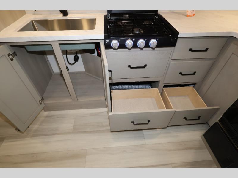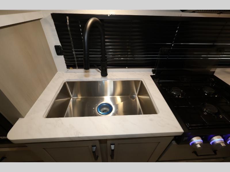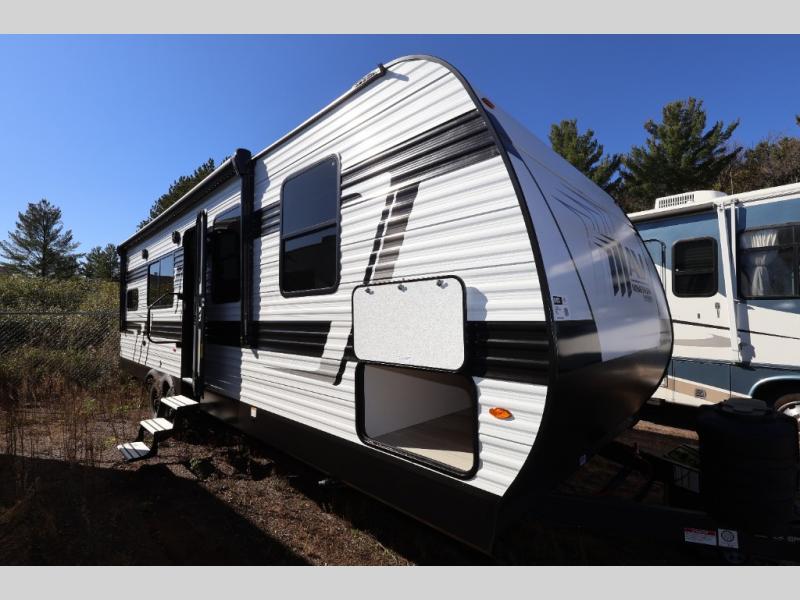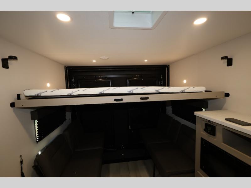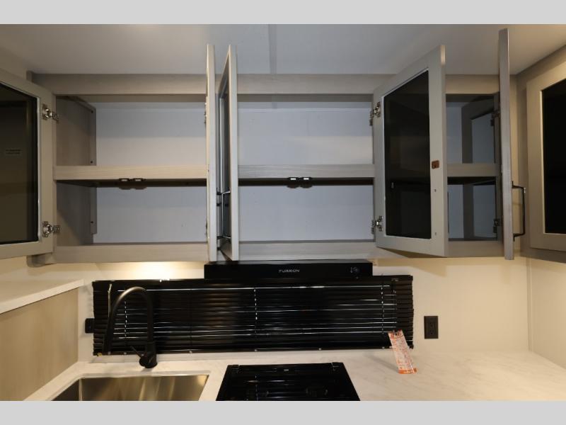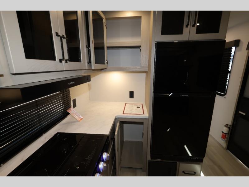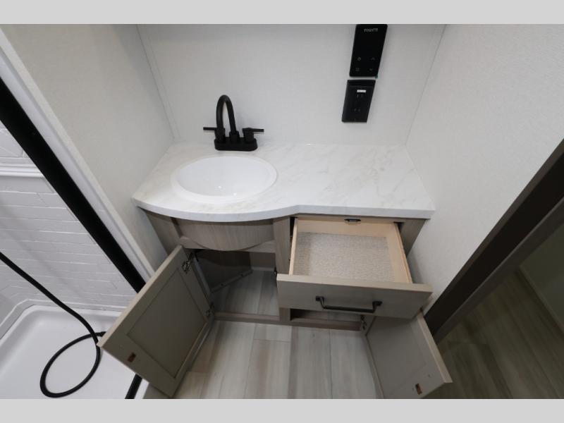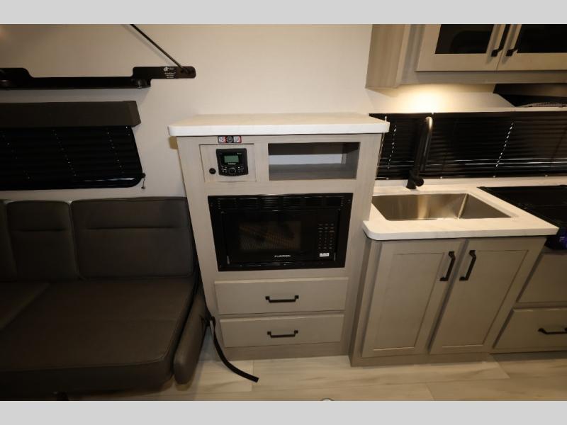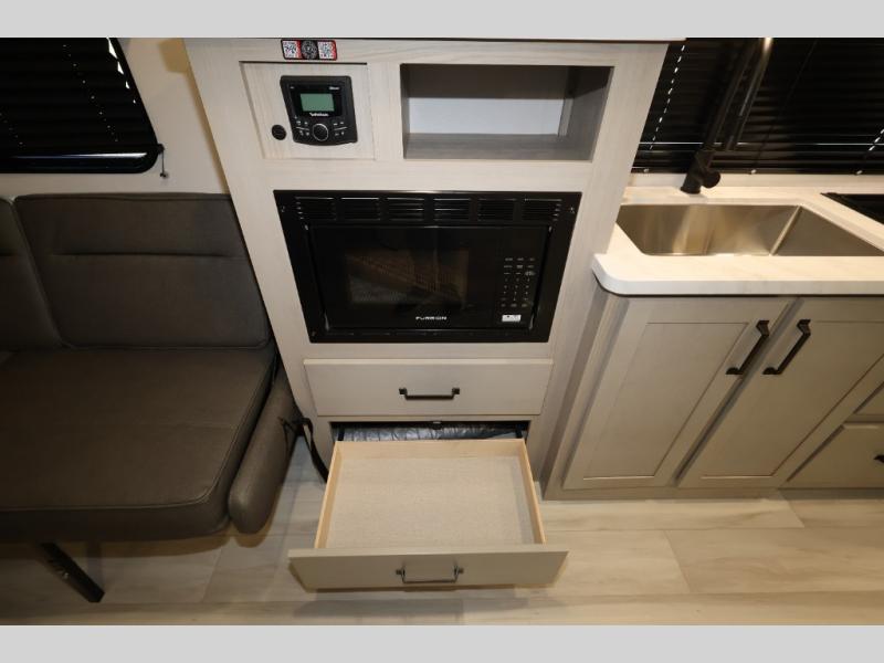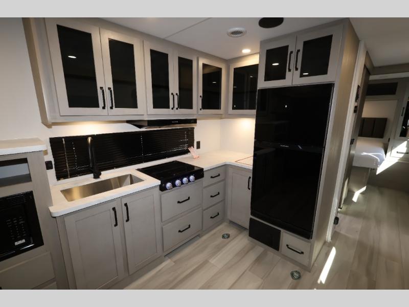 The Momentum MAV toy hauler travel trailers by Grand Design are designed to provide exactly what you need. The spacious garage provides tons of cargo space, with no wheel wells to get in the way. Additional storage includes magnetic storage door catches, and overhead consoles throughout. Conveniences like motion sensor lights and USB outlets will make your life easier, and you will be comfortable in all seasons with the 30K BTU furnace plus 15K BTU ducted air conditioning. The standard Solar Package comes with a 180W solar panel, a 40 Amp charge controller with Bluetooth, and a 12V refrigerator so you can go off-grid when the adventure calls for it.