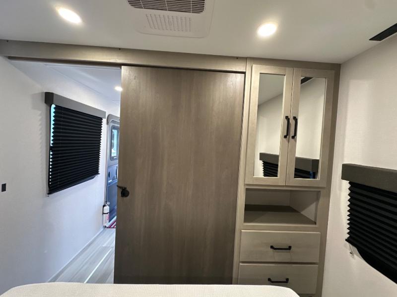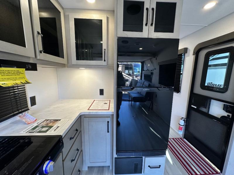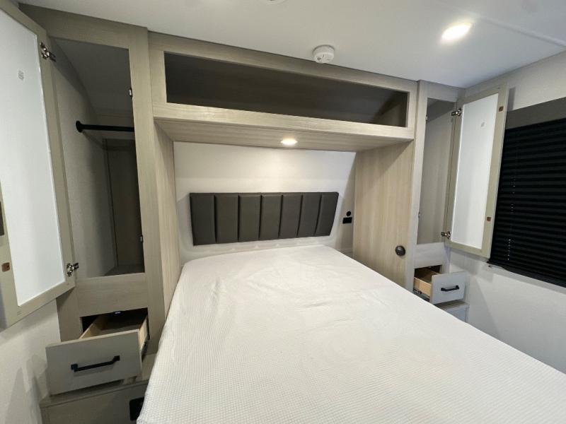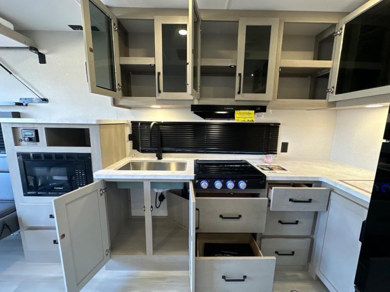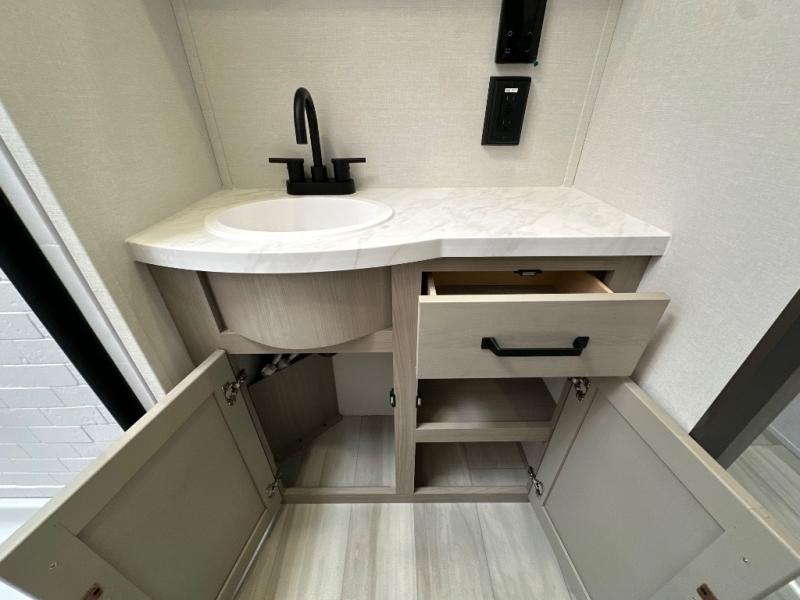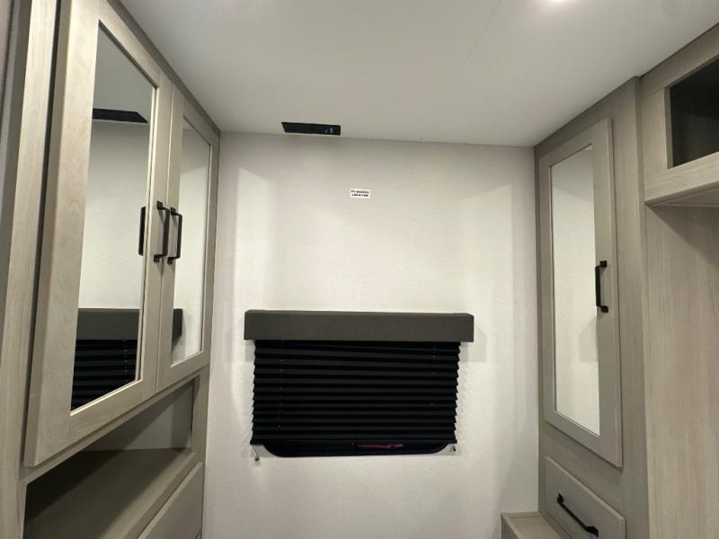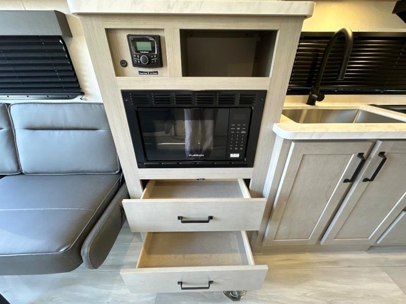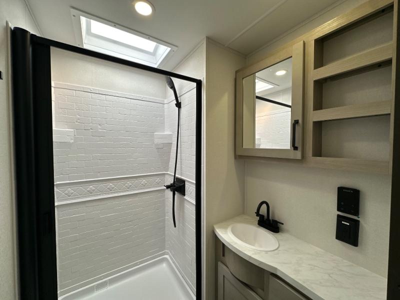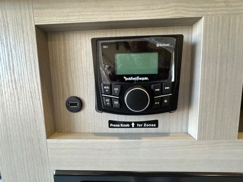 The Momentum MAV toy hauler travel trailers by Grand Design are designed to provide exactly what you need. The spacious garage provides tons of cargo space, with no wheel wells to get in the way. Additional storage includes magnetic storage door catches, and overhead consoles throughout. Conveniences like motion sensor lights and USB outlets will make your life easier, and you will be comfortable in all seasons with the 30K BTU furnace plus 15K BTU ducted air conditioning. The standard Solar Package comes with a 180W solar panel, a 40 Amp charge controller with Bluetooth, and a 12V refrigerator so you can go off-grid when the adventure calls for it.
