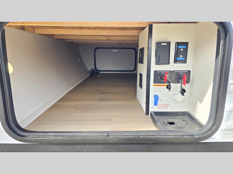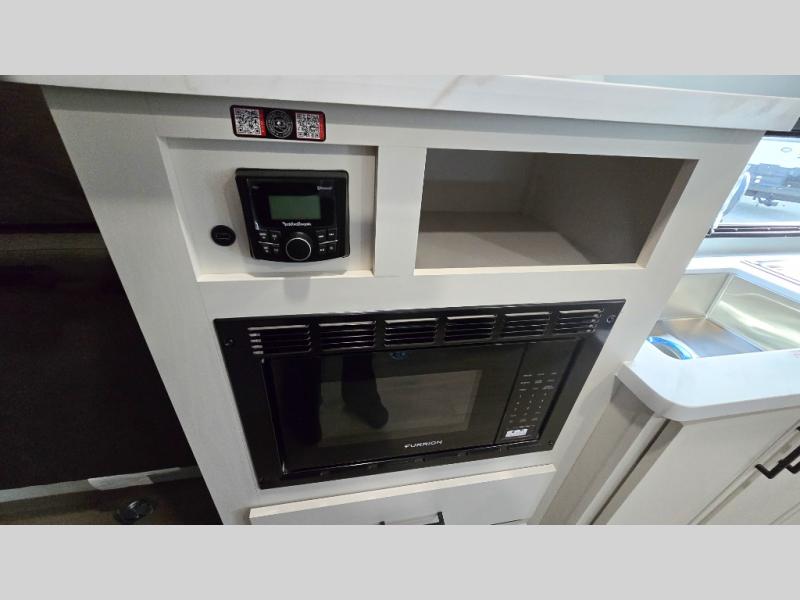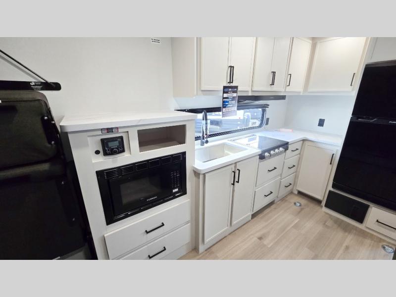 The Momentum MAV toy hauler travel trailers by Grand Design are designed to provide exactly what you need. The spacious garage provides tons of cargo space, with no wheel wells to get in the way. Additional storage includes magnetic storage door catches, and overhead consoles throughout. Conveniences like motion sensor lights and USB outlets will make your life easier, and you will be comfortable in all seasons with the 30K BTU furnace plus 15K BTU ducted air conditioning. The standard Solar Package comes with a 180W solar panel, a 40 Amp charge controller with Bluetooth, and a 12V refrigerator so you can go off-grid when the adventure calls for it.