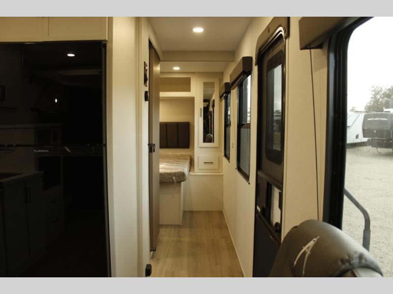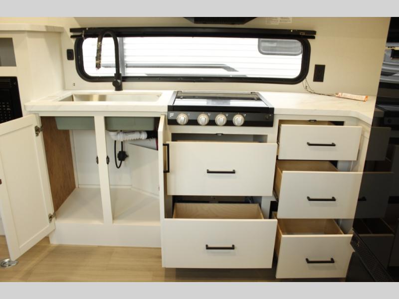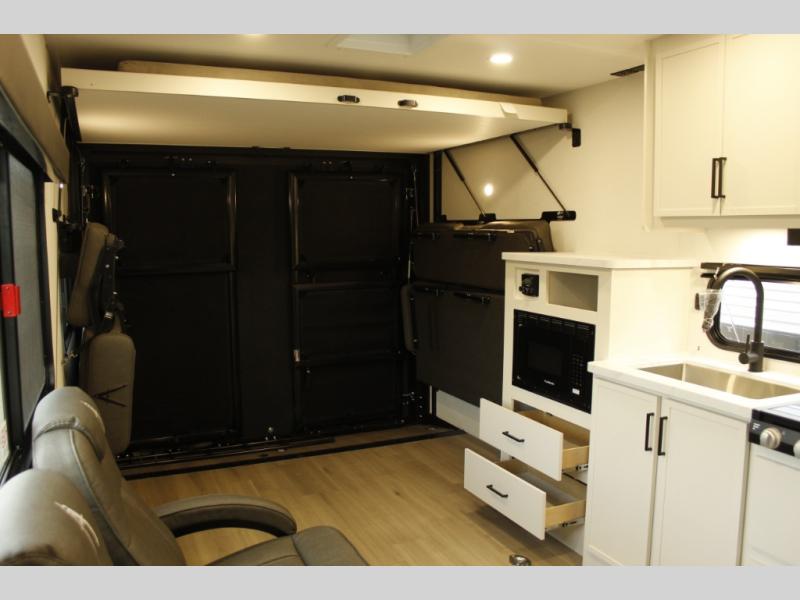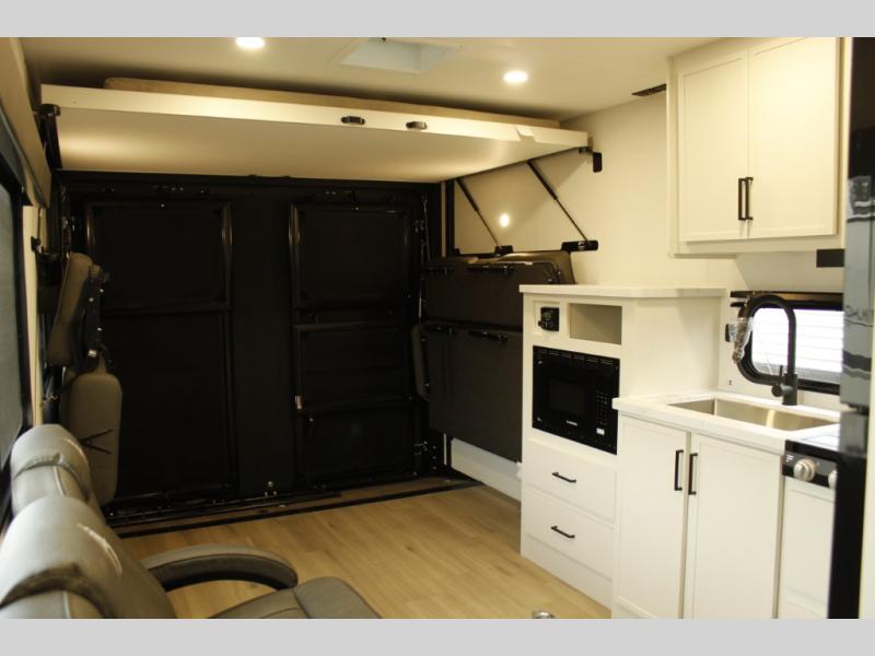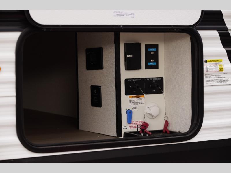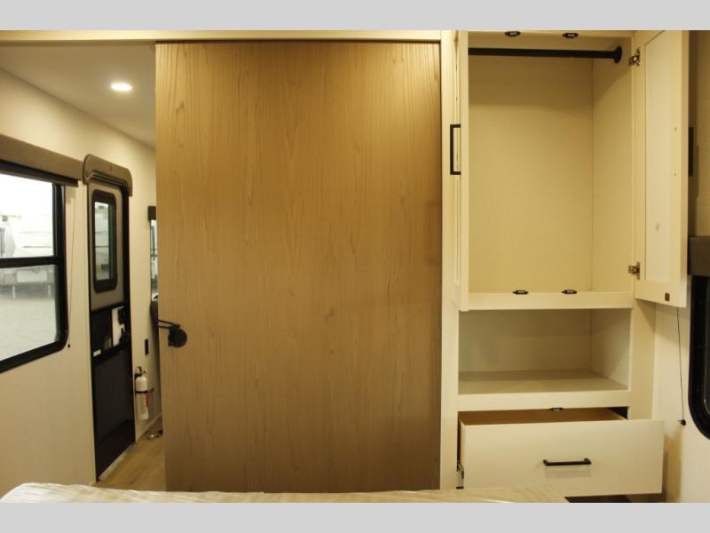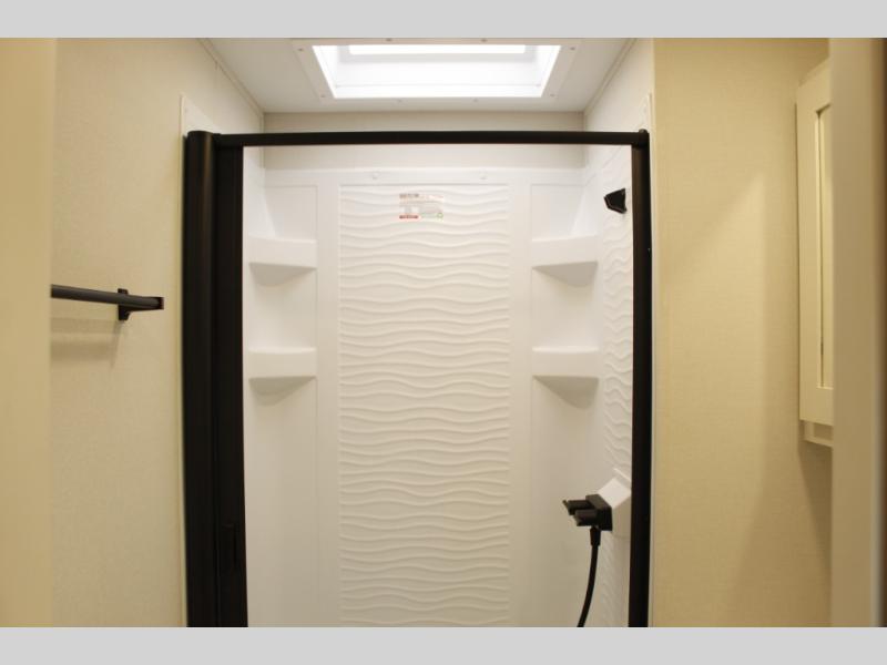 The Momentum MAV toy hauler travel trailers by Grand Design are designed to provide exactly what you need. The spacious garage provides tons of cargo space, with no wheel wells to get in the way. Additional storage includes magnetic storage door catches, and overhead consoles throughout. Conveniences like motion sensor lights and USB outlets will make your life easier, and you will be comfortable in all seasons with the 30K BTU furnace plus 15K BTU ducted air conditioning. The standard Solar Package comes with a 180W solar panel, a 40 Amp charge controller with Bluetooth, and a 12V refrigerator so you can go off-grid when the adventure calls for it.
