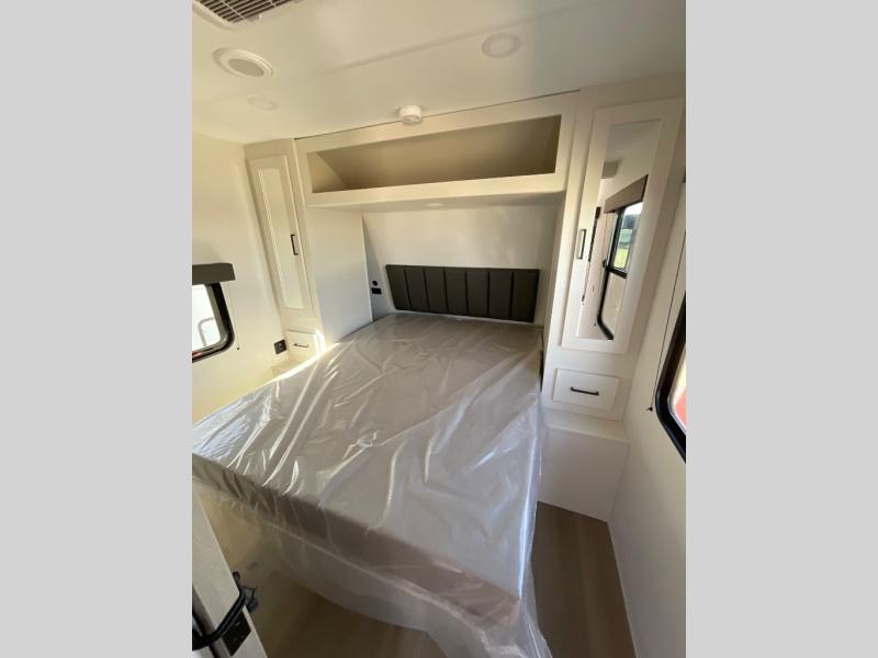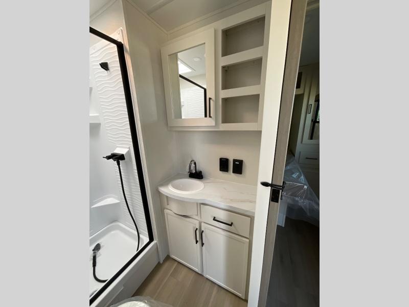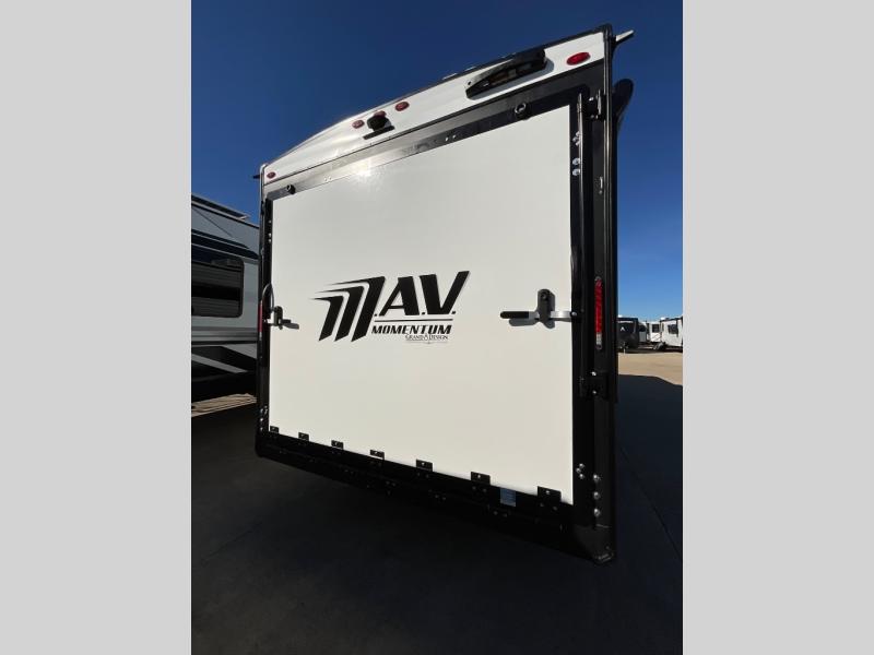 The Momentum MAV toy hauler travel trailers by Grand Design are designed to provide exactly what you need. The spacious garage provides tons of cargo space, with no wheel wells to get in the way. Additional storage includes magnetic storage door catches, and overhead consoles throughout. Conveniences like motion sensor lights and USB outlets will make your life easier, and you will be comfortable in all seasons with the 30K BTU furnace plus 15K BTU ducted air conditioning. The standard Solar Package comes with a 180W solar panel, a 40 Amp charge controller with Bluetooth, and a 12V refrigerator so you can go off-grid when the adventure calls for it.