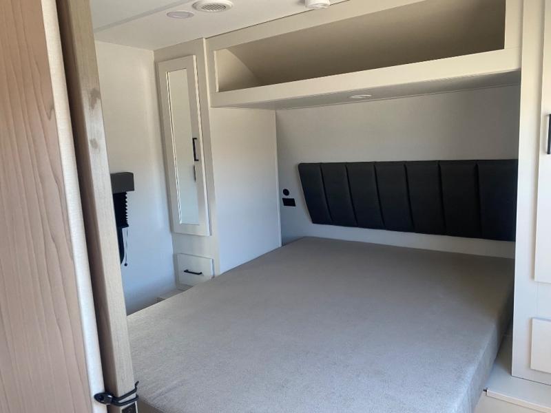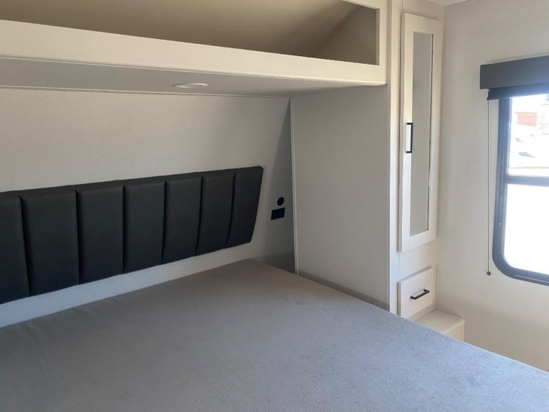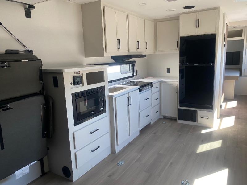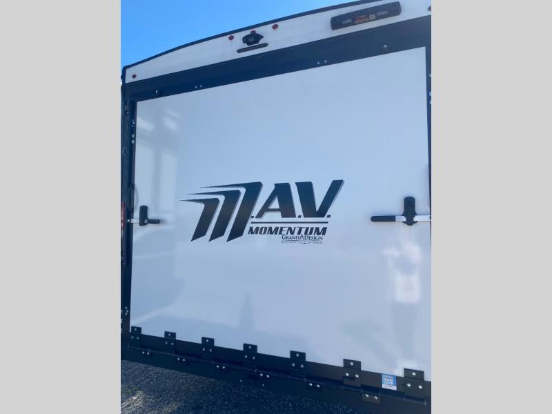 The Momentum MAV toy hauler travel trailers by Grand Design are designed to provide exactly what you need. The spacious garage provides tons of cargo space, with no wheel wells to get in the way. Additional storage includes magnetic storage door catches, and overhead consoles throughout. Conveniences like motion sensor lights and USB outlets will make your life easier, and you will be comfortable in all seasons with the 30K BTU furnace plus 15K BTU ducted air conditioning. The standard Solar Package comes with a 180W solar panel, a 40 Amp charge controller with Bluetooth, and a 12V refrigerator so you can go off-grid when the adventure calls for it.
