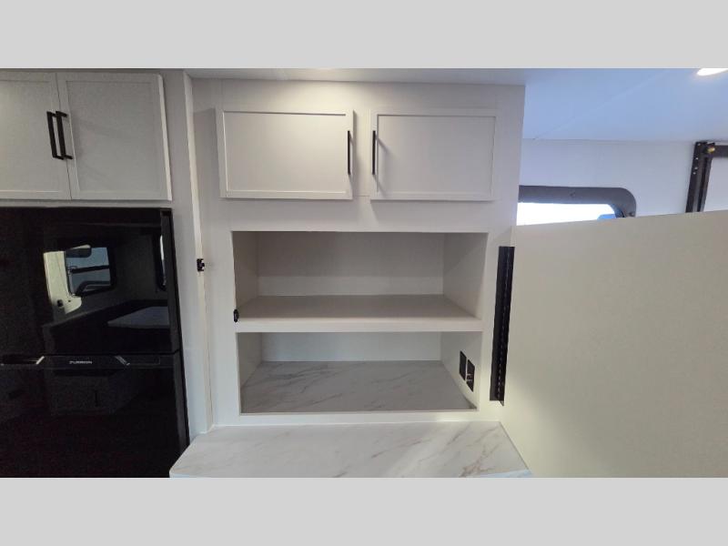 The Momentum MAV toy hauler travel trailers by Grand Design are designed to provide exactly what you need. The spacious garage provides tons of cargo space, with no wheel wells to get in the way. Additional storage includes magnetic storage door catches, and overhead consoles throughout. Conveniences like motion sensor lights and USB outlets will make your life easier, and you will be comfortable in all seasons with the 30K BTU furnace plus 15K BTU ducted air conditioning. The standard Solar Package comes with a 180W solar panel, a 40 Amp charge controller with Bluetooth, and a 12V refrigerator so you can go off-grid when the adventure calls for it.