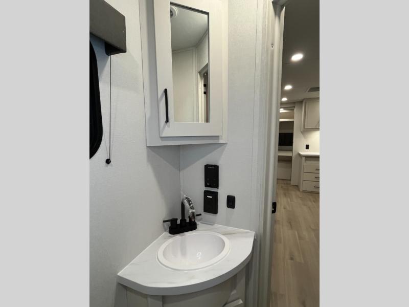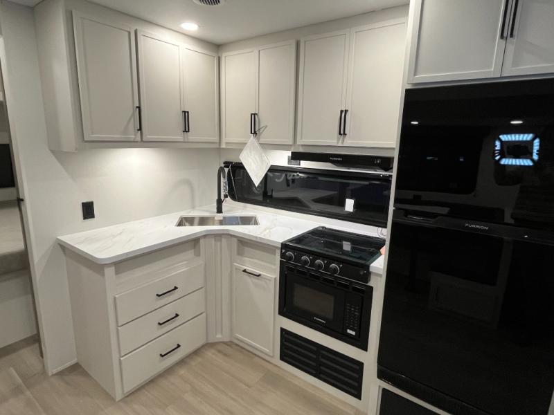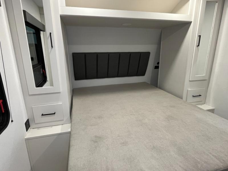 The Momentum MAV toy hauler travel trailers by Grand Design are designed to provide exactly what you need. The spacious garage provides tons of cargo space, with no wheel wells to get in the way. Additional storage includes magnetic storage door catches, and overhead consoles throughout. Conveniences like motion sensor lights and USB outlets will make your life easier, and you will be comfortable in all seasons with the 30K BTU furnace plus 15K BTU ducted air conditioning. The standard Solar Package comes with a 180W solar panel, a 40 Amp charge controller with Bluetooth, and a 12V refrigerator so you can go off-grid when the adventure calls for it.