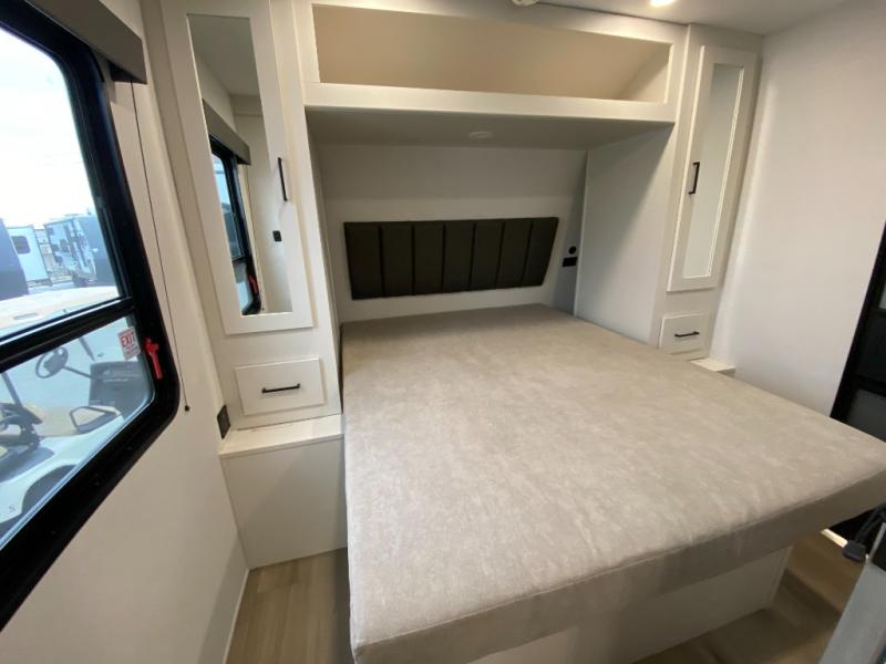 The Momentum MAV toy hauler travel trailers by Grand Design are designed to provide exactly what you need. The spacious garage provides tons of cargo space, with no wheel wells to get in the way. Additional storage includes magnetic storage door catches, and overhead consoles throughout. Conveniences like motion sensor lights and USB outlets will make your life easier, and you will be comfortable in all seasons with the 30K BTU furnace plus 15K BTU ducted air conditioning. The standard Solar Package comes with a 180W solar panel, a 40 Amp charge controller with Bluetooth, and a 12V refrigerator so you can go off-grid when the adventure calls for it.