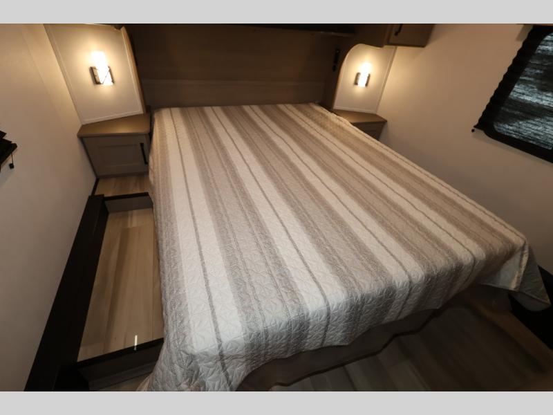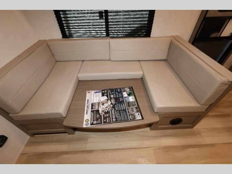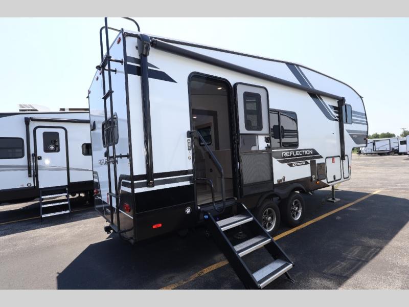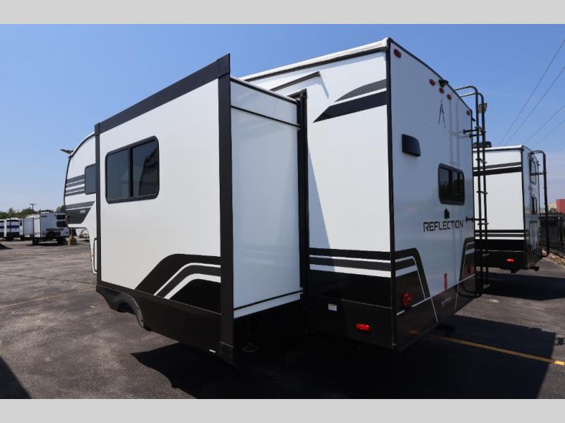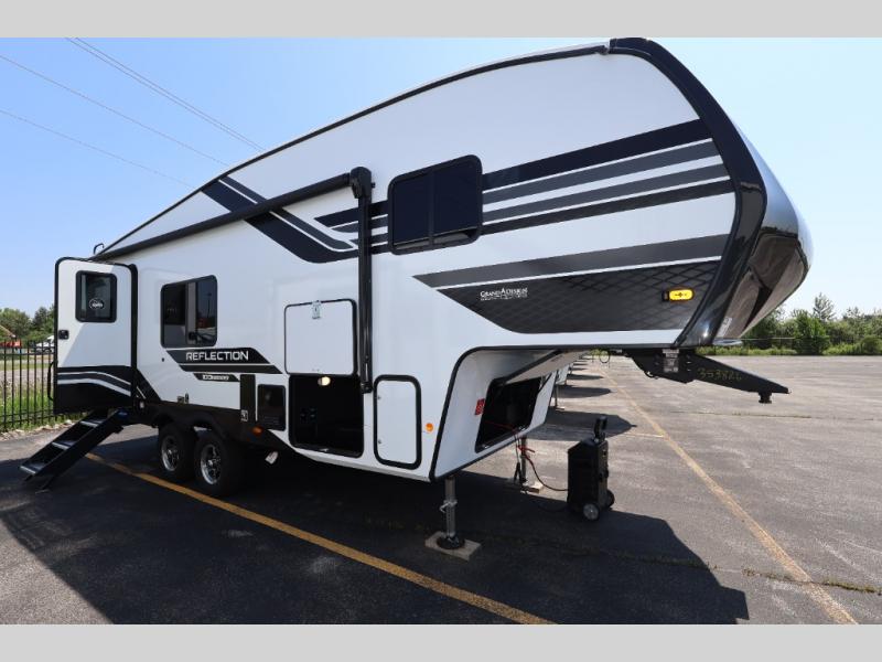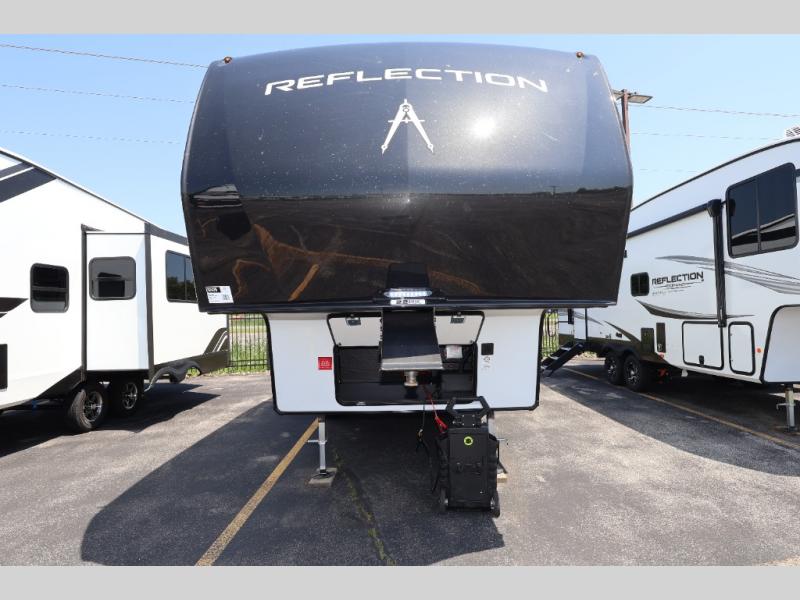 Each Reflection 100 Series fifth wheel by Grand Design is affordable and packed with luxury for unforgettable camping memories! The MorRyde CRE3000 suspension system and Goodyear Endurance tires will provide smooth towing from home to campground. And the solar package with a 180W solar panel, 60 Amp charge controller and 12V refrigerator will allow you to camp for longer periods of time and in more locations! A heated and enclosed underbelly with circulating heat is included in the Arctic 4-Seasons Protection Package, along with a double insulated roof and front cap, and thermofoil insulation under the holding tanks so you can camp all year long if you choose. You will appreciate having an on-demand water heater for hot showers after exploring, and the universal all-in-one docking station will let you monitor your RVs tanks levels and functions with ease. These models also include many luxurious interior features, such as premium Congoleum flooring, pleated shades, residential cabinetry, and matte black fixtures and hardware. Don't let the Reflection 100 Series fifth wheels pass you by!
