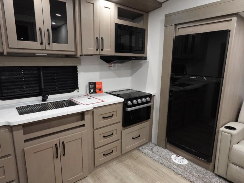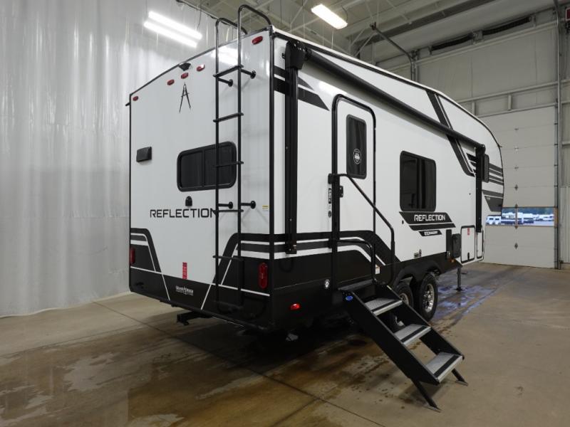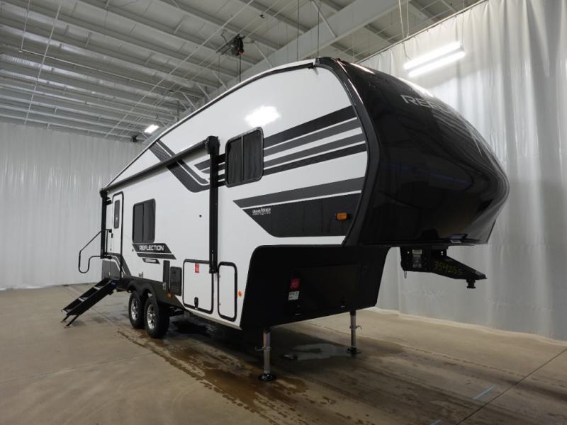 Each Reflection 100 Series fifth wheel by Grand Design is affordable and packed with luxury for unforgettable camping memories! The MorRyde CRE3000 suspension system and Goodyear Endurance tires will provide smooth towing from home to campground. And the solar package with a 180W solar panel, 60 Amp charge controller and 12V refrigerator will allow you to camp for longer periods of time and in more locations! A heated and enclosed underbelly with circulating heat is included in the Arctic 4-Seasons Protection Package, along with a double insulated roof and front cap, and thermofoil insulation under the holding tanks so you can camp all year long if you choose. You will appreciate having an on-demand water heater for hot showers after exploring, and the universal all-in-one docking station will let you monitor your RVs tanks levels and functions with ease. These models also include many luxurious interior features, such as premium Congoleum flooring, pleated shades, residential cabinetry, and matte black fixtures and hardware. Don't let the Reflection 100 Series fifth wheels pass you by!