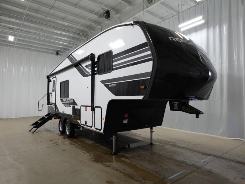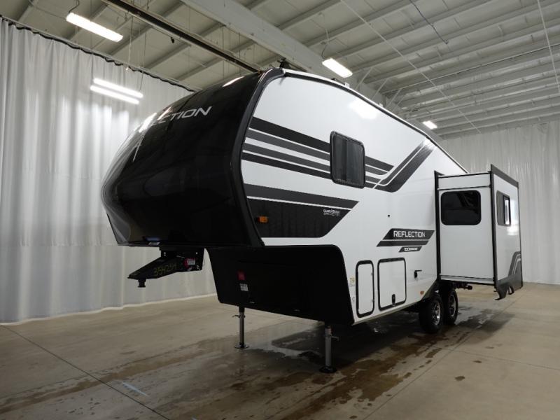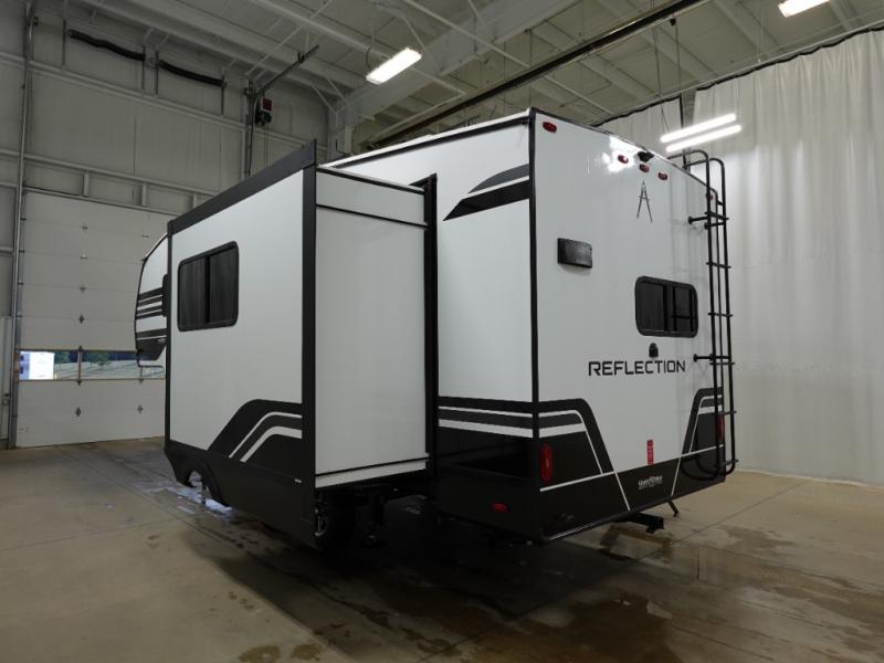 Each Reflection 100 Series fifth wheel by Grand Design is affordable and packed with luxury for unforgettable camping memories! The MorRyde CRE3000 suspension system and Goodyear Endurance tires will provide smooth towing from home to campground. And the solar package with a 180W solar panel, 60 Amp charge controller and 12V refrigerator will allow you to camp for longer periods of time and in more locations! A heated and enclosed underbelly with circulating heat is included in the Arctic 4-Seasons Protection Package, along with a double insulated roof and front cap, and thermofoil insulation under the holding tanks so you can camp all year long if you choose. You will appreciate having an on-demand water heater for hot showers after exploring, and the universal all-in-one docking station will let you monitor your RVs tanks levels and functions with ease. These models also include many luxurious interior features, such as premium Congoleum flooring, pleated shades, residential cabinetry, and matte black fixtures and hardware. Don't let the Reflection 100 Series fifth wheels pass you by!