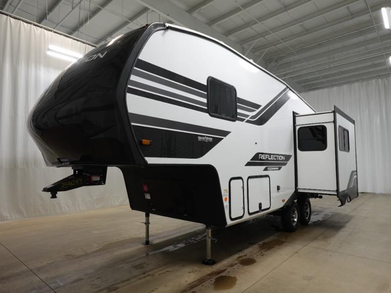 Each Reflection 100 Series fifth wheel by Grand Design is affordable and packed with luxury for unforgettable camping memories! The MorRyde CRE3000 suspension system and Goodyear Endurance tires will provide smooth towing from home to campground. And the solar package with a 180W solar panel, 60 Amp charge controller and 12V refrigerator will allow you to camp for longer periods of time and in more locations! A heated and enclosed underbelly with circulating heat is included in the Arctic 4-Seasons Protection Package, along with a double insulated roof and front cap, and thermofoil insulation under the holding tanks so you can camp all year long if you choose. You will appreciate having an on-demand water heater for hot showers after exploring, and the universal all-in-one docking station will let you monitor your RVs tanks levels and functions with ease. These models also include many luxurious interior features, such as premium Congoleum flooring, pleated shades, residential cabinetry, and matte black fixtures and hardware. Don't let the Reflection 100 Series fifth wheels pass you by!