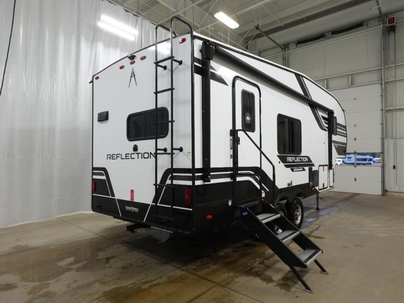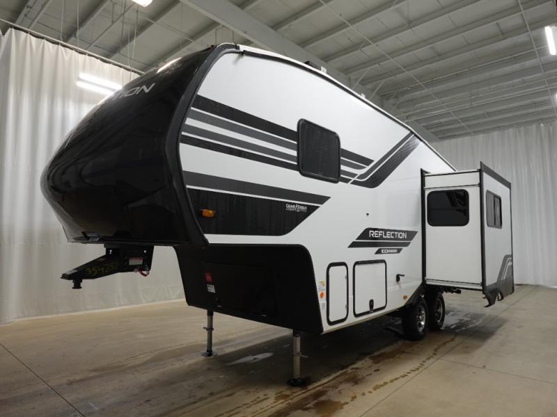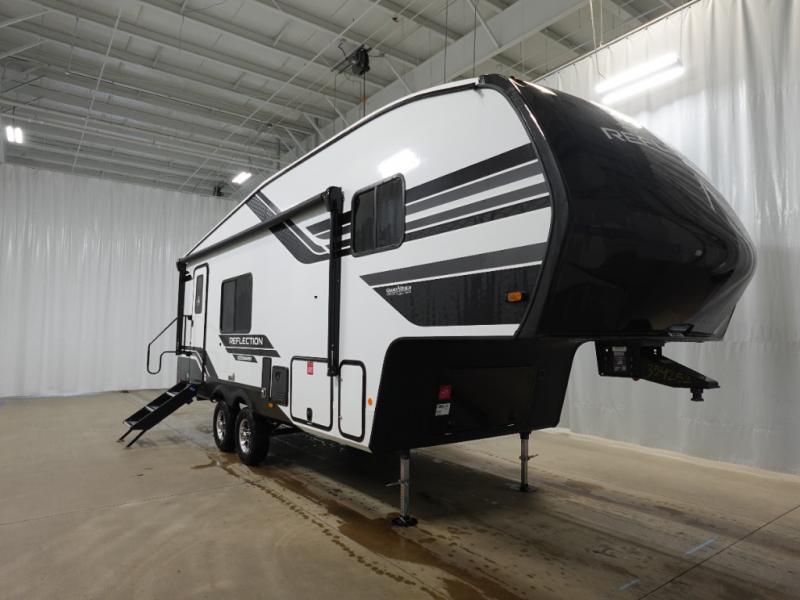 Each Reflection 100 Series fifth wheel by Grand Design is affordable and packed with luxury for unforgettable camping memories! The MorRyde CRE3000 suspension system and Goodyear Endurance tires will provide smooth towing from home to campground. And the solar package with a 180W solar panel, 60 Amp charge controller and 12V refrigerator will allow you to camp for longer periods of time and in more locations! A heated and enclosed underbelly with circulating heat is included in the Arctic 4-Seasons Protection Package, along with a double insulated roof and front cap, and thermofoil insulation under the holding tanks so you can camp all year long if you choose. You will appreciate having an on-demand water heater for hot showers after exploring, and the universal all-in-one docking station will let you monitor your RVs tanks levels and functions with ease. These models also include many luxurious interior features, such as premium Congoleum flooring, pleated shades, residential cabinetry, and matte black fixtures and hardware. Don't let the Reflection 100 Series fifth wheels pass you by!