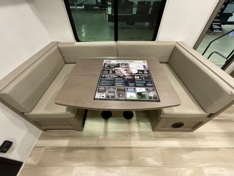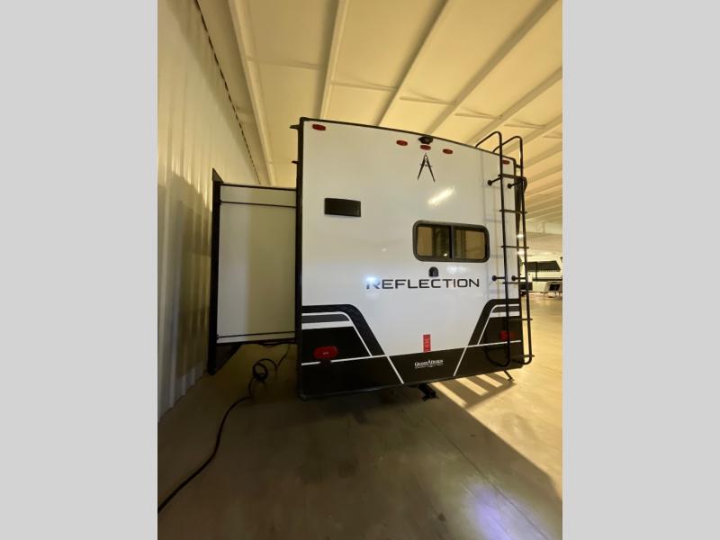 Each Reflection 100 Series fifth wheel by Grand Design is affordable and packed with luxury for unforgettable camping memories! The MorRyde CRE3000 suspension system and Goodyear Endurance tires will provide smooth towing from home to campground. And the solar package with a 180W solar panel, 60 Amp charge controller and 12V refrigerator will allow you to camp for longer periods of time and in more locations! A heated and enclosed underbelly with circulating heat is included in the Arctic 4-Seasons Protection Package, along with a double insulated roof and front cap, and thermofoil insulation under the holding tanks so you can camp all year long if you choose. You will appreciate having an on-demand water heater for hot showers after exploring, and the universal all-in-one docking station will let you monitor your RVs tanks levels and functions with ease. These models also include many luxurious interior features, such as premium Congoleum flooring, pleated shades, residential cabinetry, and matte black fixtures and hardware. Don't let the Reflection 100 Series fifth wheels pass you by!