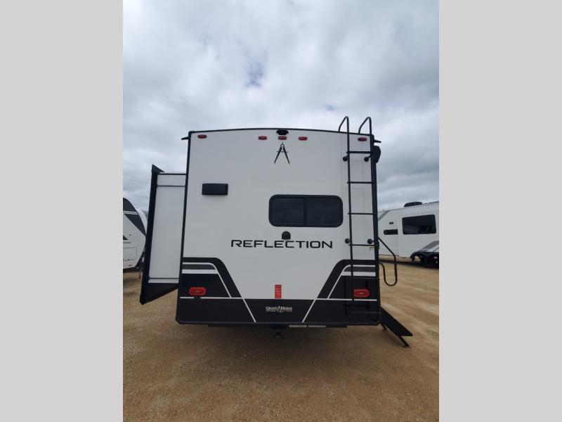 Each Reflection 100 Series fifth wheel by Grand Design is affordable and packed with luxury for unforgettable camping memories! The MorRyde CRE3000 suspension system and Goodyear Endurance tires will provide smooth towing from home to campground. And the solar package with a 180W solar panel, 60 Amp charge controller and 12V refrigerator will allow you to camp for longer periods of time and in more locations! A heated and enclosed underbelly with circulating heat is included in the Arctic 4-Seasons Protection Package, along with a double insulated roof and front cap, and thermofoil insulation under the holding tanks so you can camp all year long if you choose. You will appreciate having an on-demand water heater for hot showers after exploring, and the universal all-in-one docking station will let you monitor your RVs tanks levels and functions with ease. These models also include many luxurious interior features, such as premium Congoleum flooring, pleated shades, residential cabinetry, and matte black fixtures and hardware. Don't let the Reflection 100 Series fifth wheels pass you by!