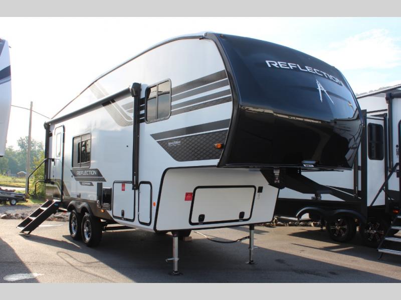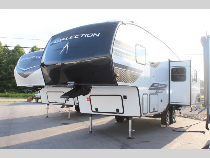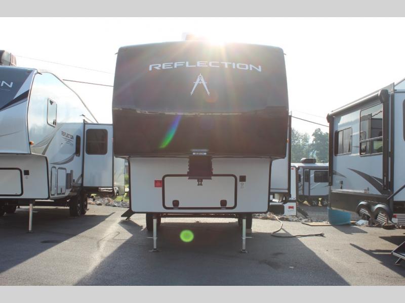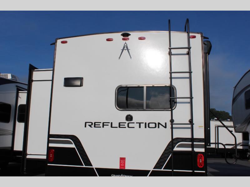 Each Reflection 100 Series fifth wheel by Grand Design is affordable and packed with luxury for unforgettable camping memories! The MorRyde CRE3000 suspension system and Goodyear Endurance tires will provide smooth towing from home to campground. And the solar package with a 180W solar panel, 60 Amp charge controller and 12V refrigerator will allow you to camp for longer periods of time and in more locations! A heated and enclosed underbelly with circulating heat is included in the Arctic 4-Seasons Protection Package, along with a double insulated roof and front cap, and thermofoil insulation under the holding tanks so you can camp all year long if you choose. You will appreciate having an on-demand water heater for hot showers after exploring, and the universal all-in-one docking station will let you monitor your RVs tanks levels and functions with ease. These models also include many luxurious interior features, such as premium Congoleum flooring, pleated shades, residential cabinetry, and matte black fixtures and hardware. Don't let the Reflection 100 Series fifth wheels pass you by!