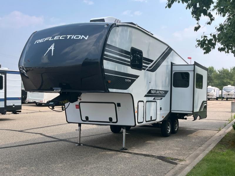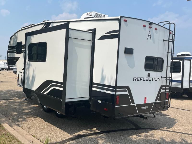 Each Reflection 100 Series fifth wheel by Grand Design is affordable and packed with luxury for unforgettable camping memories! The MorRyde CRE3000 suspension system and Goodyear Endurance tires will provide smooth towing from home to campground. And the solar package with a 180W solar panel, 60 Amp charge controller and 12V refrigerator will allow you to camp for longer periods of time and in more locations! A heated and enclosed underbelly with circulating heat is included in the Arctic 4-Seasons Protection Package, along with a double insulated roof and front cap, and thermofoil insulation under the holding tanks so you can camp all year long if you choose. You will appreciate having an on-demand water heater for hot showers after exploring, and the universal all-in-one docking station will let you monitor your RVs tanks levels and functions with ease. These models also include many luxurious interior features, such as premium Congoleum flooring, pleated shades, residential cabinetry, and matte black fixtures and hardware. Don't let the Reflection 100 Series fifth wheels pass you by!