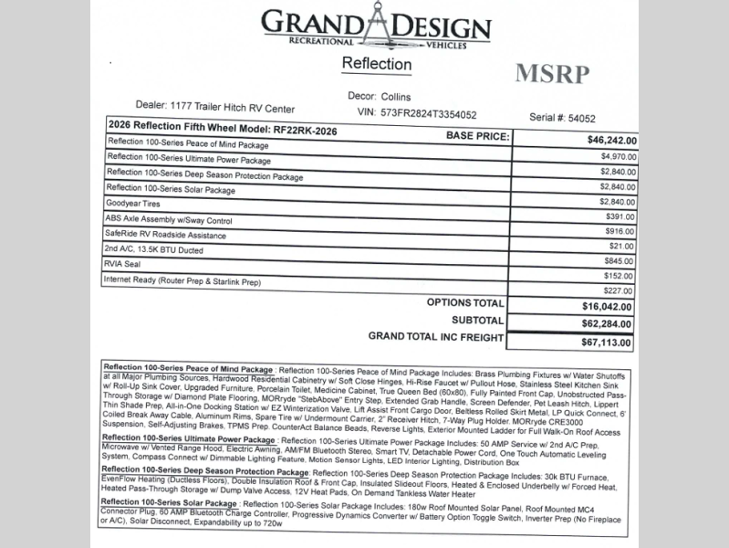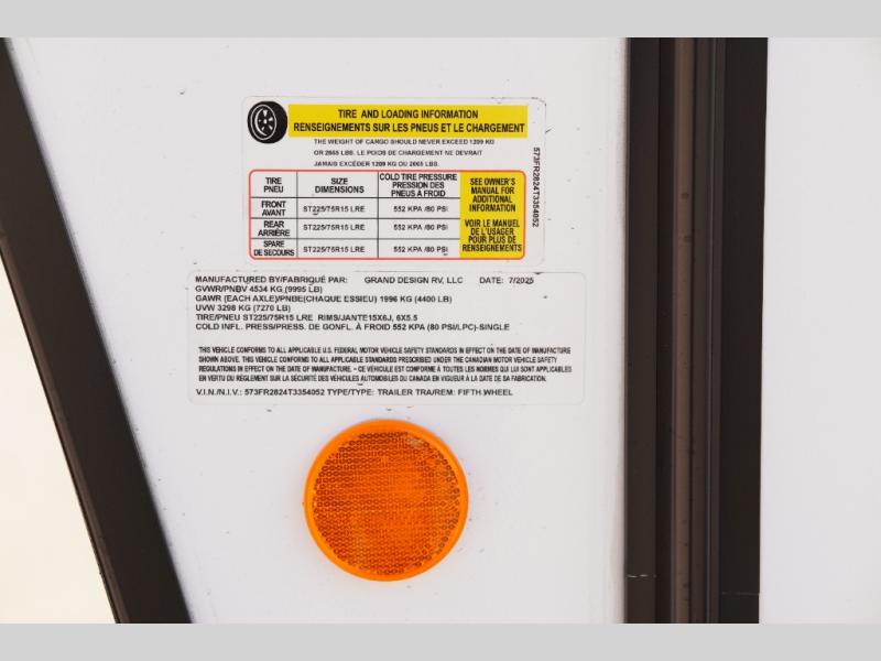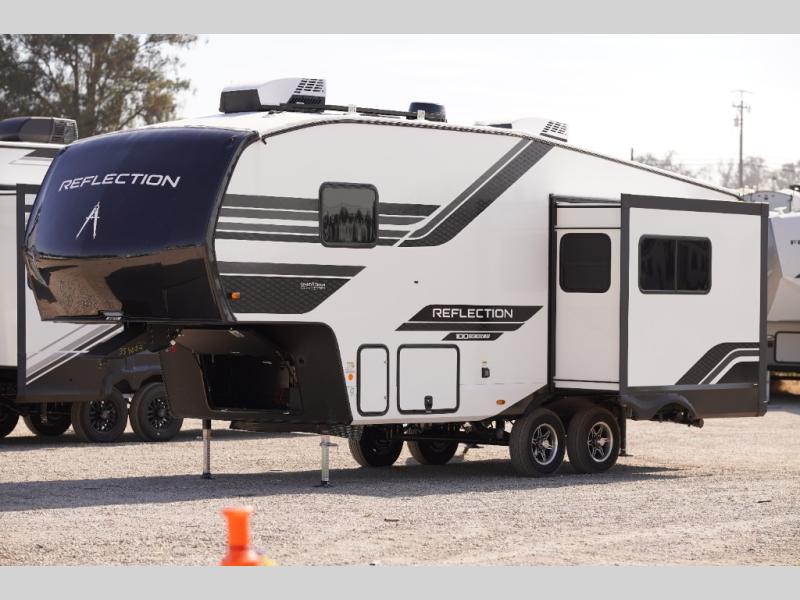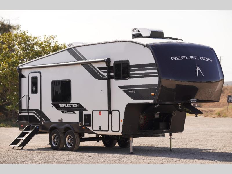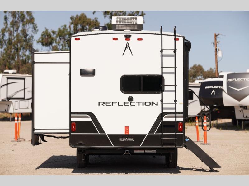 Each Reflection 100 Series fifth wheel by Grand Design is affordable and packed with luxury for unforgettable camping memories! The MorRyde CRE3000 suspension system and Goodyear Endurance tires will provide smooth towing from home to campground. And the solar package with a 180W solar panel, 60 Amp charge controller and 12V refrigerator will allow you to camp for longer periods of time and in more locations! A heated and enclosed underbelly with circulating heat is included in the Arctic 4-Seasons Protection Package, along with a double insulated roof and front cap, and thermofoil insulation under the holding tanks so you can camp all year long if you choose. You will appreciate having an on-demand water heater for hot showers after exploring, and the universal all-in-one docking station will let you monitor your RVs tanks levels and functions with ease. These models also include many luxurious interior features, such as premium Congoleum flooring, pleated shades, residential cabinetry, and matte black fixtures and hardware. Don't let the Reflection 100 Series fifth wheels pass you by!
