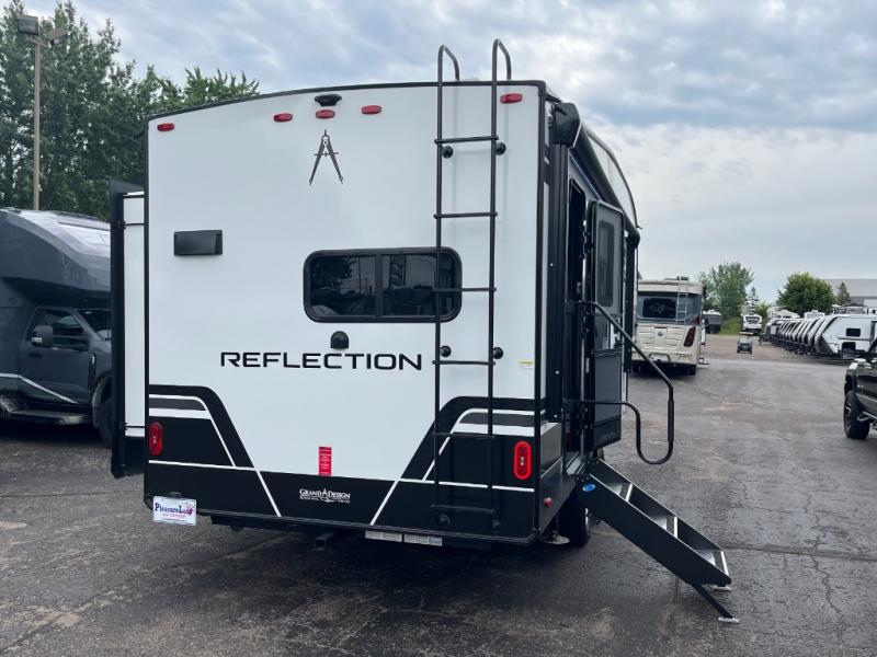 Each Reflection 100 Series fifth wheel by Grand Design is affordable and packed with luxury for unforgettable camping memories! The MorRyde CRE3000 suspension system and Goodyear Endurance tires will provide smooth towing from home to campground. And the solar package with a 180W solar panel, 60 Amp charge controller and 12V refrigerator will allow you to camp for longer periods of time and in more locations! A heated and enclosed underbelly with circulating heat is included in the Arctic 4-Seasons Protection Package, along with a double insulated roof and front cap, and thermofoil insulation under the holding tanks so you can camp all year long if you choose. You will appreciate having an on-demand water heater for hot showers after exploring, and the universal all-in-one docking station will let you monitor your RVs tanks levels and functions with ease. These models also include many luxurious interior features, such as premium Congoleum flooring, pleated shades, residential cabinetry, and matte black fixtures and hardware. Don't let the Reflection 100 Series fifth wheels pass you by!
