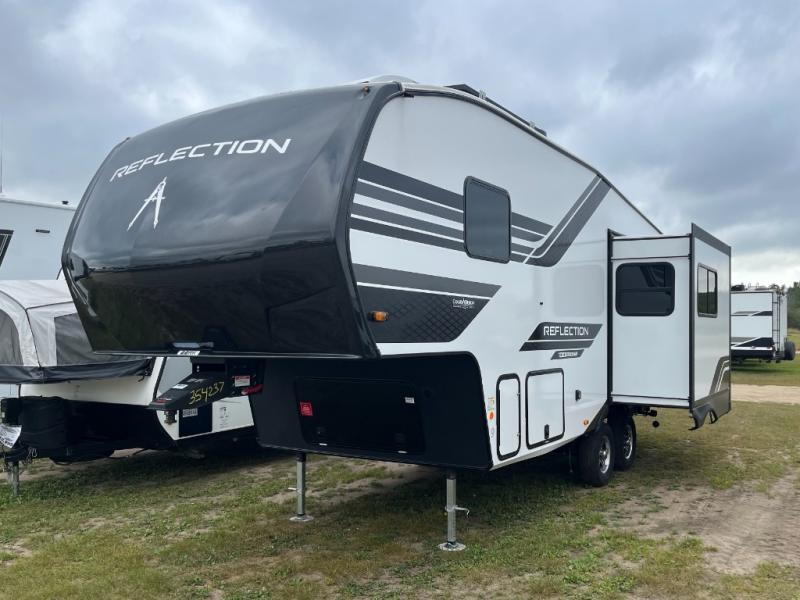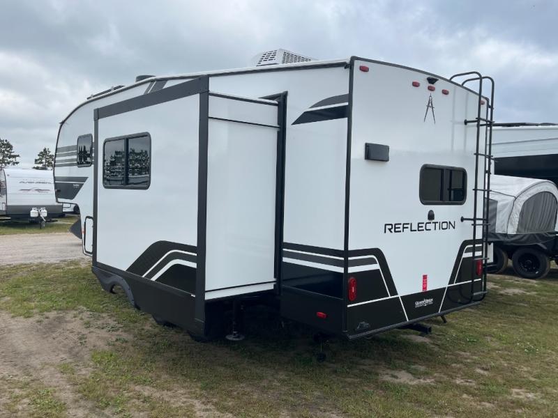 Each Reflection 100 Series fifth wheel by Grand Design is affordable and packed with luxury for unforgettable camping memories! The MorRyde CRE3000 suspension system and Goodyear Endurance tires will provide smooth towing from home to campground. And the solar package with a 180W solar panel, 60 Amp charge controller and 12V refrigerator will allow you to camp for longer periods of time and in more locations! A heated and enclosed underbelly with circulating heat is included in the Arctic 4-Seasons Protection Package, along with a double insulated roof and front cap, and thermofoil insulation under the holding tanks so you can camp all year long if you choose. You will appreciate having an on-demand water heater for hot showers after exploring, and the universal all-in-one docking station will let you monitor your RVs tanks levels and functions with ease. These models also include many luxurious interior features, such as premium Congoleum flooring, pleated shades, residential cabinetry, and matte black fixtures and hardware. Don't let the Reflection 100 Series fifth wheels pass you by!