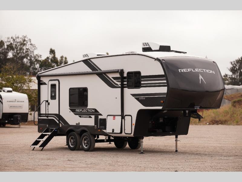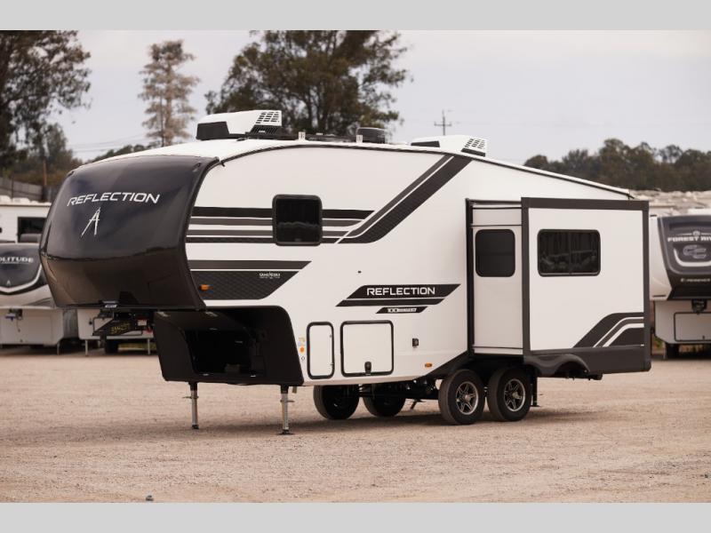 Each Reflection 100 Series fifth wheel by Grand Design is affordable and packed with luxury for unforgettable camping memories! The MorRyde CRE3000 suspension system and Goodyear Endurance tires will provide smooth towing from home to campground. And the solar package with a 180W solar panel, 60 Amp charge controller and 12V refrigerator will allow you to camp for longer periods of time and in more locations! A heated and enclosed underbelly with circulating heat is included in the Arctic 4-Seasons Protection Package, along with a double insulated roof and front cap, and thermofoil insulation under the holding tanks so you can camp all year long if you choose. You will appreciate having an on-demand water heater for hot showers after exploring, and the universal all-in-one docking station will let you monitor your RVs tanks levels and functions with ease. These models also include many luxurious interior features, such as premium Congoleum flooring, pleated shades, residential cabinetry, and matte black fixtures and hardware. Don't let the Reflection 100 Series fifth wheels pass you by!