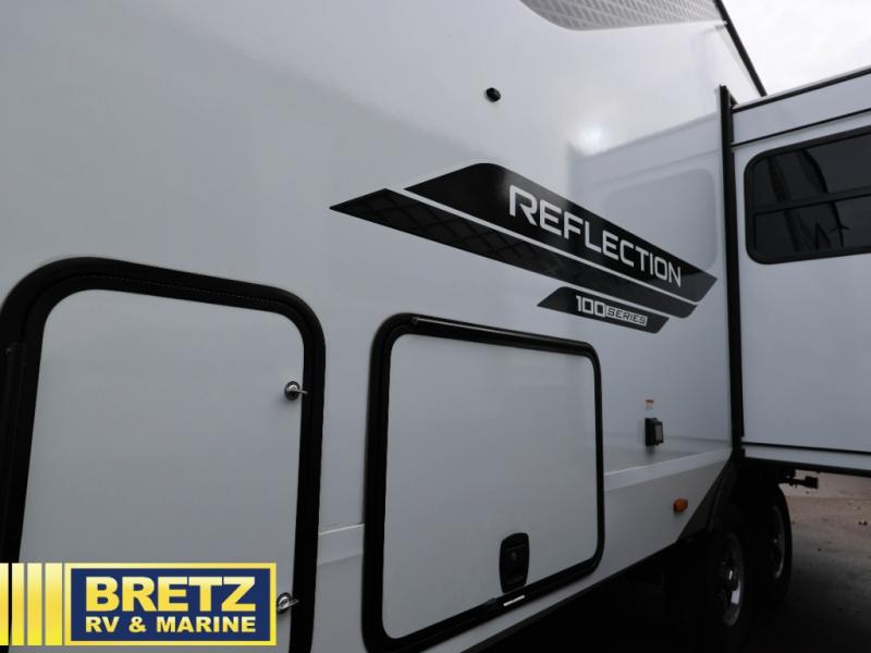 Each Reflection 100 Series fifth wheel by Grand Design is affordable and packed with luxury for unforgettable camping memories! The MorRyde CRE3000 suspension system and Goodyear Endurance tires will provide smooth towing from home to campground. And the solar package with a 180W solar panel, 60 Amp charge controller and 12V refrigerator will allow you to camp for longer periods of time and in more locations! A heated and enclosed underbelly with circulating heat is included in the Arctic 4-Seasons Protection Package, along with a double insulated roof and front cap, and thermofoil insulation under the holding tanks so you can camp all year long if you choose. You will appreciate having an on-demand water heater for hot showers after exploring, and the universal all-in-one docking station will let you monitor your RVs tanks levels and functions with ease. These models also include many luxurious interior features, such as premium Congoleum flooring, pleated shades, residential cabinetry, and matte black fixtures and hardware. Don't let the Reflection 100 Series fifth wheels pass you by!