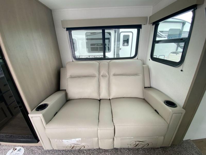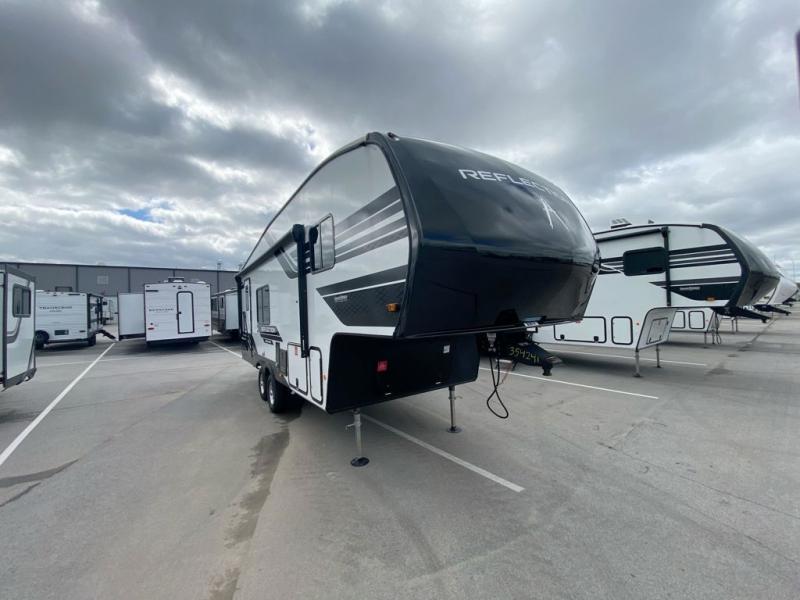 Each Reflection 100 Series fifth wheel by Grand Design is affordable and packed with luxury for unforgettable camping memories! The MorRyde CRE3000 suspension system and Goodyear Endurance tires will provide smooth towing from home to campground. And the solar package with a 180W solar panel, 60 Amp charge controller and 12V refrigerator will allow you to camp for longer periods of time and in more locations! A heated and enclosed underbelly with circulating heat is included in the Arctic 4-Seasons Protection Package, along with a double insulated roof and front cap, and thermofoil insulation under the holding tanks so you can camp all year long if you choose. You will appreciate having an on-demand water heater for hot showers after exploring, and the universal all-in-one docking station will let you monitor your RVs tanks levels and functions with ease. These models also include many luxurious interior features, such as premium Congoleum flooring, pleated shades, residential cabinetry, and matte black fixtures and hardware. Don't let the Reflection 100 Series fifth wheels pass you by!