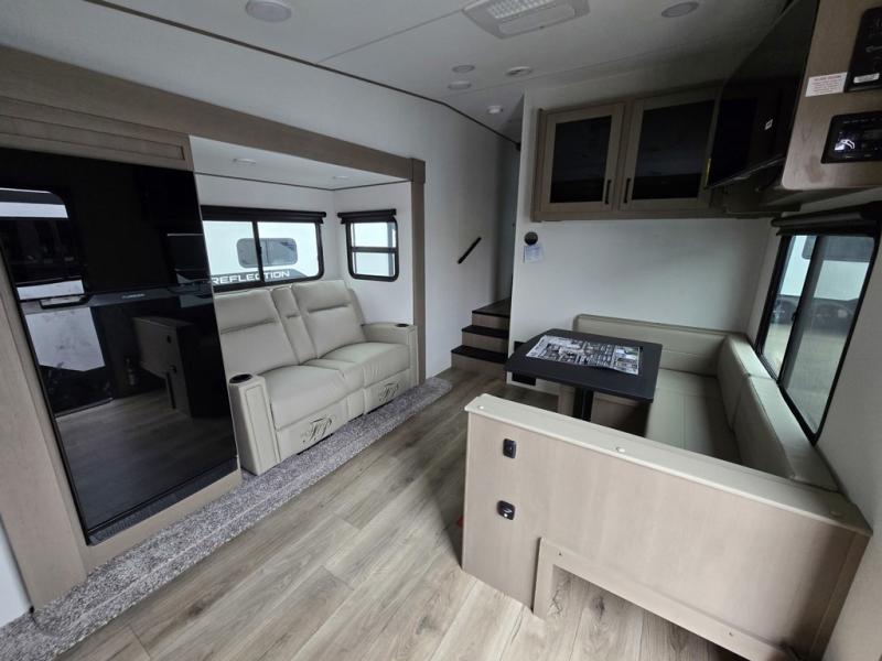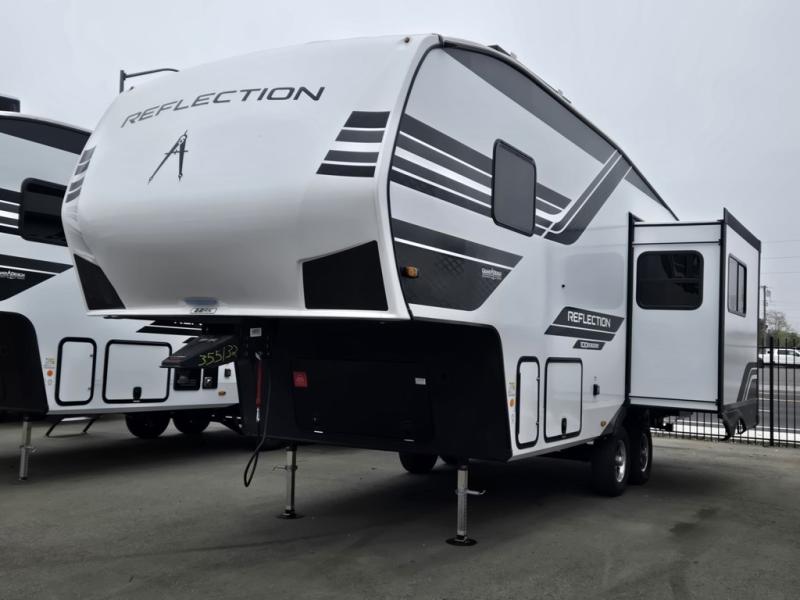 Each Reflection 100 Series fifth wheel by Grand Design is affordable and packed with luxury for unforgettable camping memories! The MorRyde CRE3000 suspension system and Goodyear Endurance tires will provide smooth towing from home to campground. And the solar package with a 180W solar panel, 60 Amp charge controller and 12V refrigerator will allow you to camp for longer periods of time and in more locations! A heated and enclosed underbelly with circulating heat is included in the Arctic 4-Seasons Protection Package, along with a double insulated roof and front cap, and thermofoil insulation under the holding tanks so you can camp all year long if you choose. You will appreciate having an on-demand water heater for hot showers after exploring, and the universal all-in-one docking station will let you monitor your RVs tanks levels and functions with ease. These models also include many luxurious interior features, such as premium Congoleum flooring, pleated shades, residential cabinetry, and matte black fixtures and hardware. Don't let the Reflection 100 Series fifth wheels pass you by!