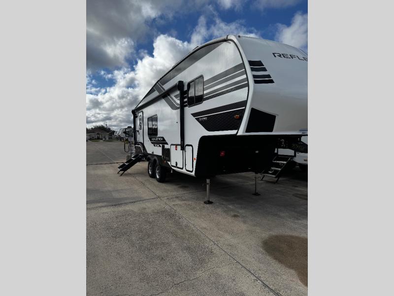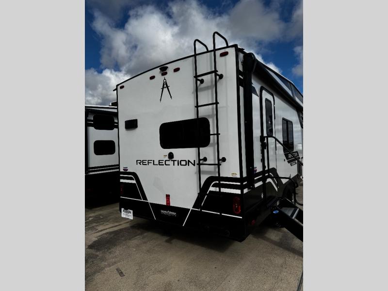 Each Reflection 100 Series fifth wheel by Grand Design is affordable and packed with luxury for unforgettable camping memories! The MorRyde CRE3000 suspension system and Goodyear Endurance tires will provide smooth towing from home to campground. And the solar package with a 180W solar panel, 60 Amp charge controller and 12V refrigerator will allow you to camp for longer periods of time and in more locations! A heated and enclosed underbelly with circulating heat is included in the Arctic 4-Seasons Protection Package, along with a double insulated roof and front cap, and thermofoil insulation under the holding tanks so you can camp all year long if you choose. You will appreciate having an on-demand water heater for hot showers after exploring, and the universal all-in-one docking station will let you monitor your RVs tanks levels and functions with ease. These models also include many luxurious interior features, such as premium Congoleum flooring, pleated shades, residential cabinetry, and matte black fixtures and hardware. Don't let the Reflection 100 Series fifth wheels pass you by!