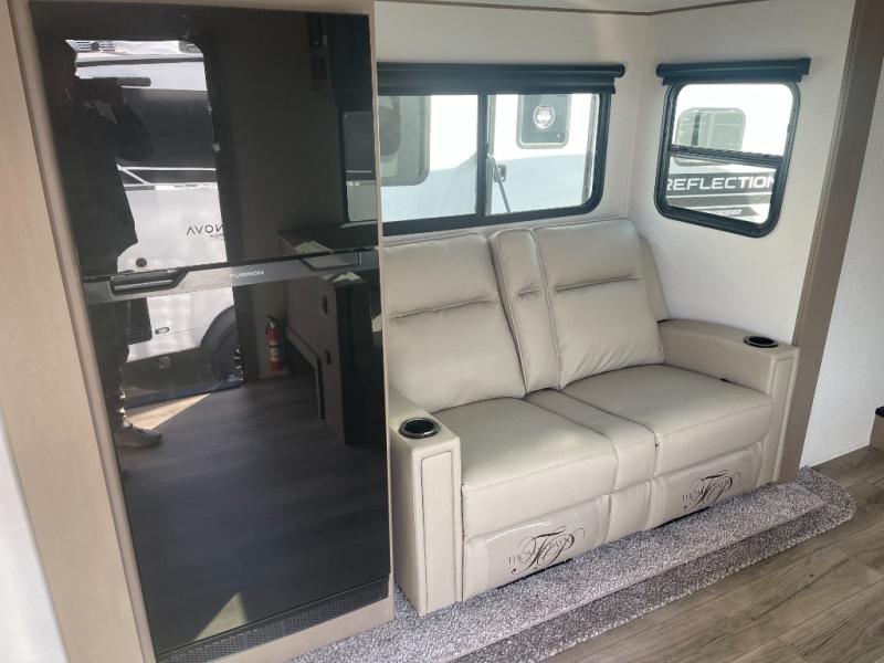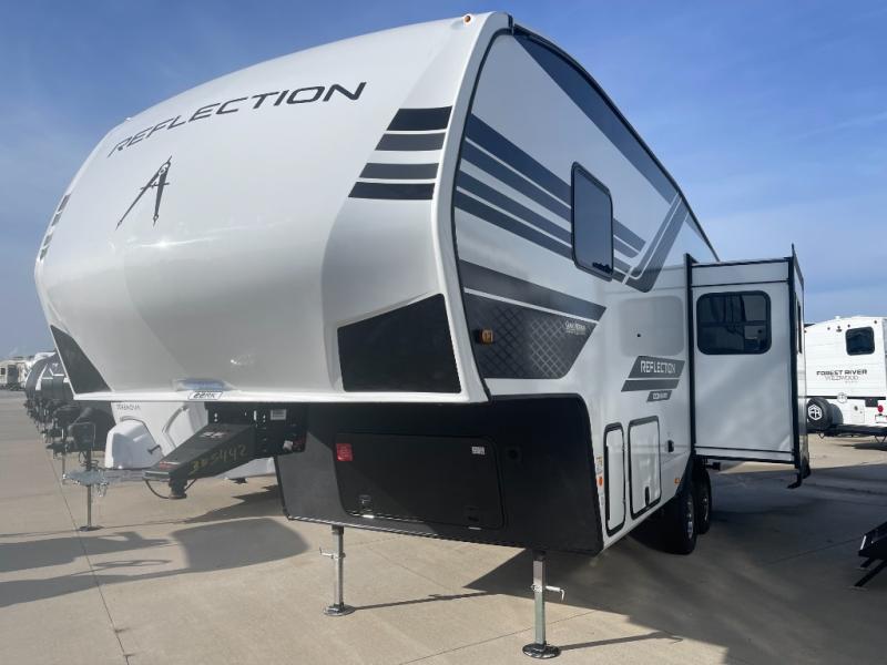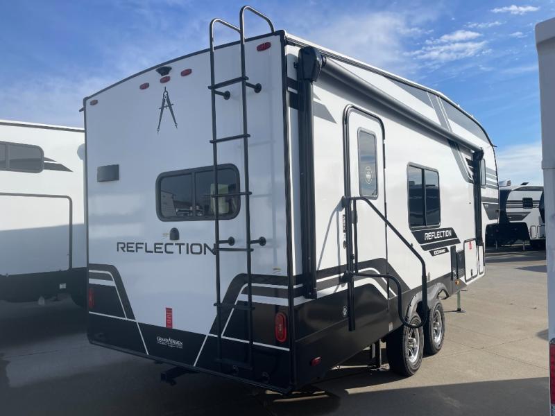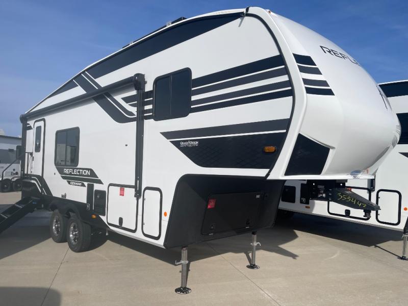 Each Reflection 100 Series fifth wheel by Grand Design is affordable and packed with luxury for unforgettable camping memories! The MorRyde CRE3000 suspension system and Goodyear Endurance tires will provide smooth towing from home to campground. And the solar package with a 180W solar panel, 60 Amp charge controller and 12V refrigerator will allow you to camp for longer periods of time and in more locations! A heated and enclosed underbelly with circulating heat is included in the Arctic 4-Seasons Protection Package, along with a double insulated roof and front cap, and thermofoil insulation under the holding tanks so you can camp all year long if you choose. You will appreciate having an on-demand water heater for hot showers after exploring, and the universal all-in-one docking station will let you monitor your RVs tanks levels and functions with ease. These models also include many luxurious interior features, such as premium Congoleum flooring, pleated shades, residential cabinetry, and matte black fixtures and hardware. Don't let the Reflection 100 Series fifth wheels pass you by!