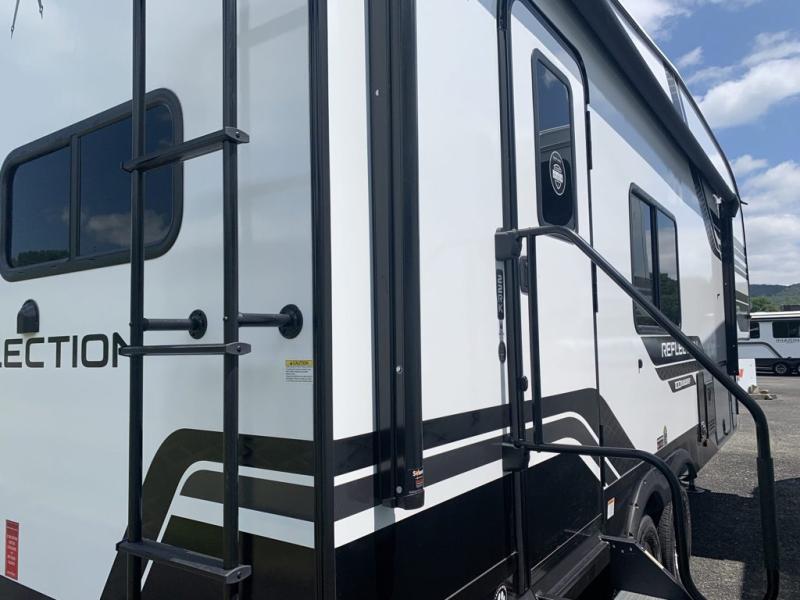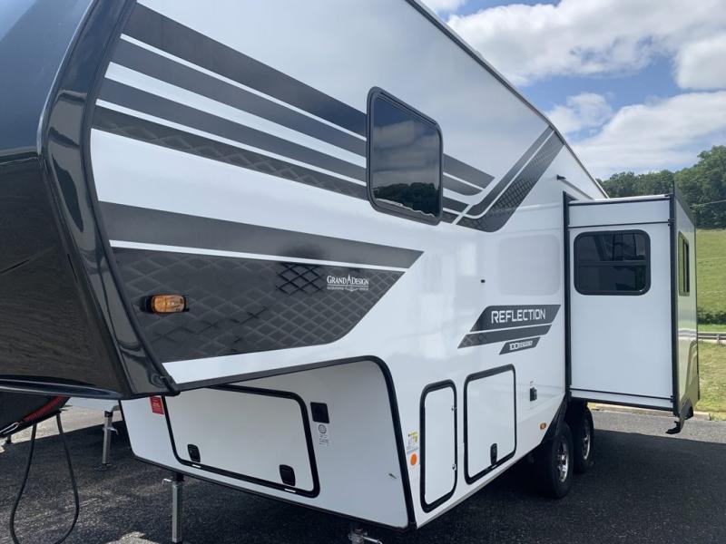 Each Reflection 100 Series fifth wheel by Grand Design is affordable and packed with luxury for unforgettable camping memories! The MorRyde CRE3000 suspension system and Goodyear Endurance tires will provide smooth towing from home to campground. And the solar package with a 180W solar panel, 60 Amp charge controller and 12V refrigerator will allow you to camp for longer periods of time and in more locations! A heated and enclosed underbelly with circulating heat is included in the Arctic 4-Seasons Protection Package, along with a double insulated roof and front cap, and thermofoil insulation under the holding tanks so you can camp all year long if you choose. You will appreciate having an on-demand water heater for hot showers after exploring, and the universal all-in-one docking station will let you monitor your RVs tanks levels and functions with ease. These models also include many luxurious interior features, such as premium Congoleum flooring, pleated shades, residential cabinetry, and matte black fixtures and hardware. Don't let the Reflection 100 Series fifth wheels pass you by!