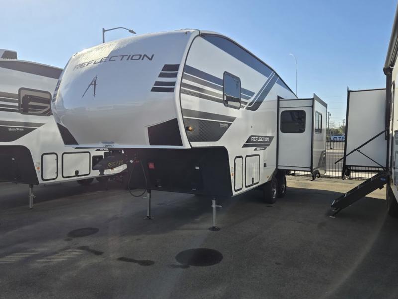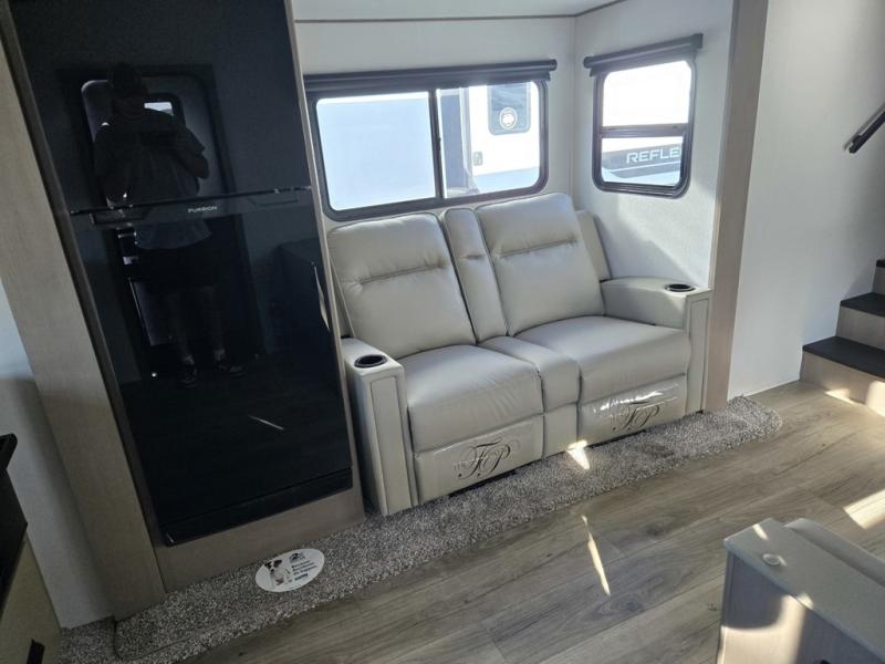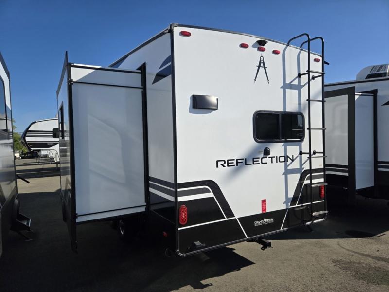 Each Reflection 100 Series fifth wheel by Grand Design is affordable and packed with luxury for unforgettable camping memories! The MorRyde CRE3000 suspension system and Goodyear Endurance tires will provide smooth towing from home to campground. And the solar package with a 180W solar panel, 60 Amp charge controller and 12V refrigerator will allow you to camp for longer periods of time and in more locations! A heated and enclosed underbelly with circulating heat is included in the Arctic 4-Seasons Protection Package, along with a double insulated roof and front cap, and thermofoil insulation under the holding tanks so you can camp all year long if you choose. You will appreciate having an on-demand water heater for hot showers after exploring, and the universal all-in-one docking station will let you monitor your RVs tanks levels and functions with ease. These models also include many luxurious interior features, such as premium Congoleum flooring, pleated shades, residential cabinetry, and matte black fixtures and hardware. Don't let the Reflection 100 Series fifth wheels pass you by!