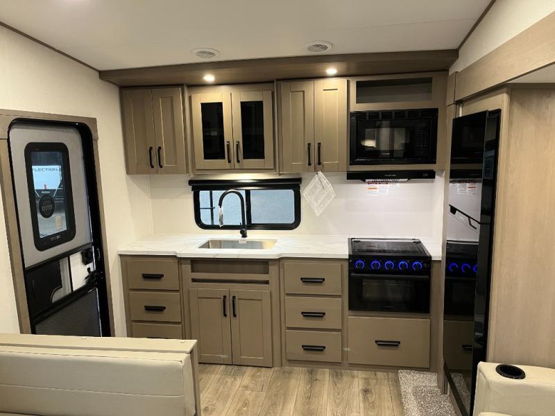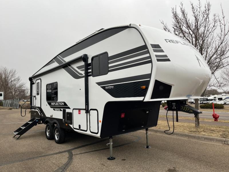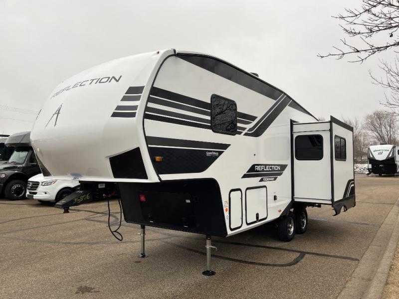 Each Reflection 100 Series fifth wheel by Grand Design is affordable and packed with luxury for unforgettable camping memories! The MorRyde CRE3000 suspension system and Goodyear Endurance tires will provide smooth towing from home to campground. And the solar package with a 180W solar panel, 60 Amp charge controller and 12V refrigerator will allow you to camp for longer periods of time and in more locations! A heated and enclosed underbelly with circulating heat is included in the Arctic 4-Seasons Protection Package, along with a double insulated roof and front cap, and thermofoil insulation under the holding tanks so you can camp all year long if you choose. You will appreciate having an on-demand water heater for hot showers after exploring, and the universal all-in-one docking station will let you monitor your RVs tanks levels and functions with ease. These models also include many luxurious interior features, such as premium Congoleum flooring, pleated shades, residential cabinetry, and matte black fixtures and hardware. Don't let the Reflection 100 Series fifth wheels pass you by!
