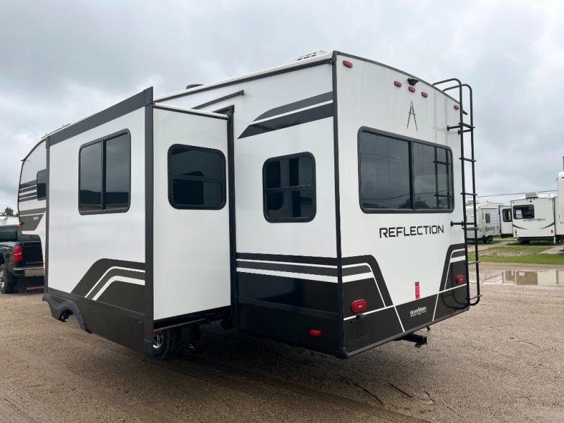 Each Reflection 100 Series fifth wheel by Grand Design is affordable and packed with luxury for unforgettable camping memories! The MorRyde CRE3000 suspension system and Goodyear Endurance tires will provide smooth towing from home to campground. And the solar package with a 180W solar panel, 60 Amp charge controller and 12V refrigerator will allow you to camp for longer periods of time and in more locations! A heated and enclosed underbelly with circulating heat is included in the Arctic 4-Seasons Protection Package, along with a double insulated roof and front cap, and thermofoil insulation under the holding tanks so you can camp all year long if you choose. You will appreciate having an on-demand water heater for hot showers after exploring, and the universal all-in-one docking station will let you monitor your RVs tanks levels and functions with ease. These models also include many luxurious interior features, such as premium Congoleum flooring, pleated shades, residential cabinetry, and matte black fixtures and hardware. Don't let the Reflection 100 Series fifth wheels pass you by!