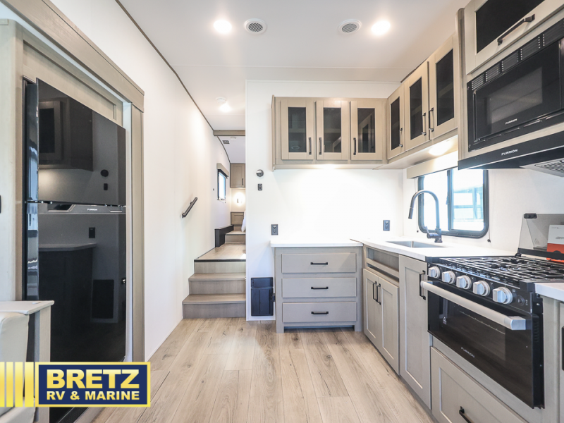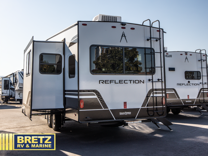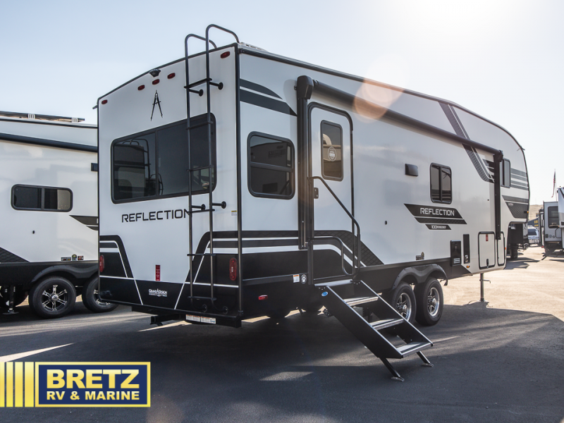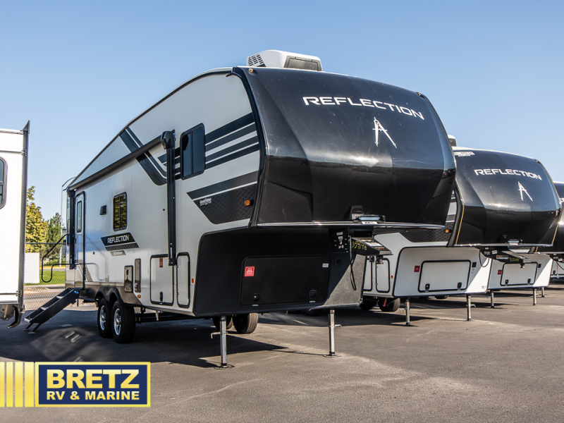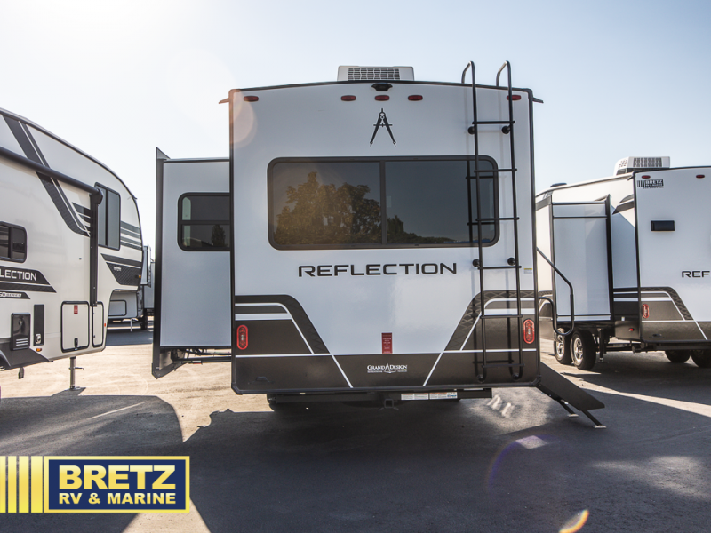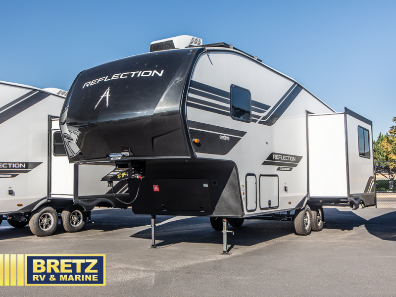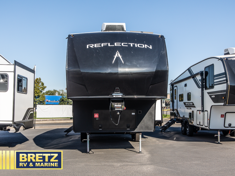 Each Reflection 100 Series fifth wheel by Grand Design is affordable and packed with luxury for unforgettable camping memories! The MorRyde CRE3000 suspension system and Goodyear Endurance tires will provide smooth towing from home to campground. And the solar package with a 180W solar panel, 60 Amp charge controller and 12V refrigerator will allow you to camp for longer periods of time and in more locations! A heated and enclosed underbelly with circulating heat is included in the Arctic 4-Seasons Protection Package, along with a double insulated roof and front cap, and thermofoil insulation under the holding tanks so you can camp all year long if you choose. You will appreciate having an on-demand water heater for hot showers after exploring, and the universal all-in-one docking station will let you monitor your RVs tanks levels and functions with ease. These models also include many luxurious interior features, such as premium Congoleum flooring, pleated shades, residential cabinetry, and matte black fixtures and hardware. Don't let the Reflection 100 Series fifth wheels pass you by!