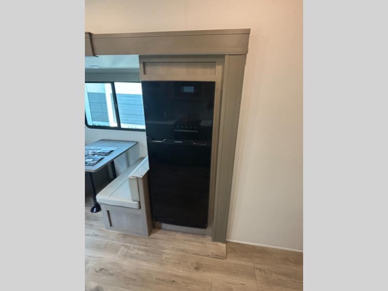 This is the perfect couple's trailer with a space for an overnight guest or two little ones on the booth dinette. You can switch out this dinette for an optional swivel dinette as well, and the standard theater seating can be replaced by an optional trundle bed if you need more sleeping space. A 40" HDTV will keep you entertained when the weather isn't cooperating, and you can whip up your best meals in the full kitchen. And a 19' power awning will provide shade if you choose to take your plate outdoors! The spacious full bath will let you clean up each day, and you'll feel right at home in the front private bedroom with a queen bed!