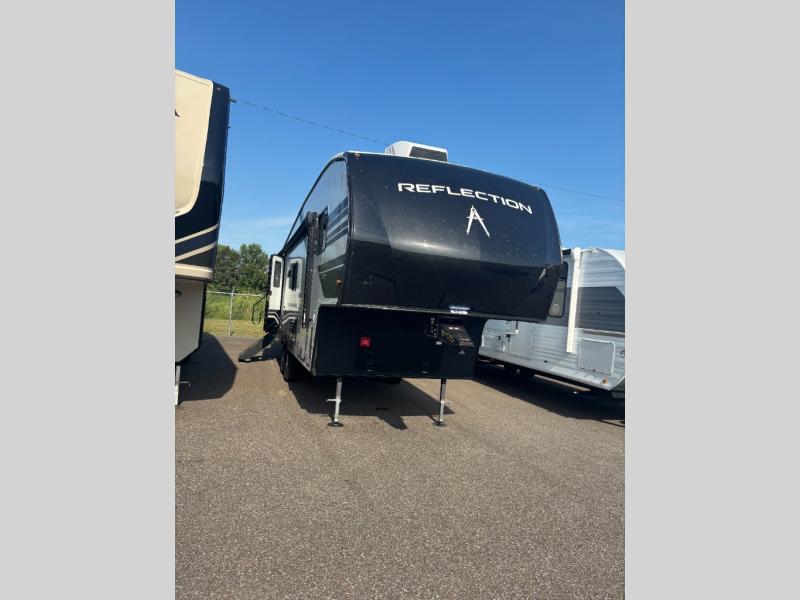 Each Reflection 100 Series fifth wheel by Grand Design is affordable and packed with luxury for unforgettable camping memories! The MorRyde CRE3000 suspension system and Goodyear Endurance tires will provide smooth towing from home to campground. And the solar package with a 180W solar panel, 60 Amp charge controller and 12V refrigerator will allow you to camp for longer periods of time and in more locations! A heated and enclosed underbelly with circulating heat is included in the Arctic 4-Seasons Protection Package, along with a double insulated roof and front cap, and thermofoil insulation under the holding tanks so you can camp all year long if you choose. You will appreciate having an on-demand water heater for hot showers after exploring, and the universal all-in-one docking station will let you monitor your RVs tanks levels and functions with ease. These models also include many luxurious interior features, such as premium Congoleum flooring, pleated shades, residential cabinetry, and matte black fixtures and hardware. Don't let the Reflection 100 Series fifth wheels pass you by!