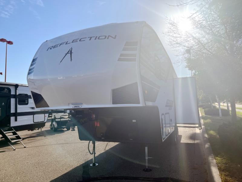 Each Reflection 100 Series fifth wheel by Grand Design is affordable and packed with luxury for unforgettable camping memories! The MorRyde CRE3000 suspension system and Goodyear Endurance tires will provide smooth towing from home to campground. And the solar package with a 180W solar panel, 60 Amp charge controller and 12V refrigerator will allow you to camp for longer periods of time and in more locations! A heated and enclosed underbelly with circulating heat is included in the Arctic 4-Seasons Protection Package, along with a double insulated roof and front cap, and thermofoil insulation under the holding tanks so you can camp all year long if you choose. You will appreciate having an on-demand water heater for hot showers after exploring, and the universal all-in-one docking station will let you monitor your RVs tanks levels and functions with ease. These models also include many luxurious interior features, such as premium Congoleum flooring, pleated shades, residential cabinetry, and matte black fixtures and hardware. Don't let the Reflection 100 Series fifth wheels pass you by!