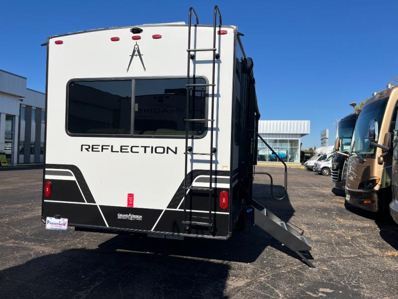 Each Reflection 100 Series fifth wheel by Grand Design is affordable and packed with luxury for unforgettable camping memories! The MorRyde CRE3000 suspension system and Goodyear Endurance tires will provide smooth towing from home to campground. And the solar package with a 180W solar panel, 60 Amp charge controller and 12V refrigerator will allow you to camp for longer periods of time and in more locations! A heated and enclosed underbelly with circulating heat is included in the Arctic 4-Seasons Protection Package, along with a double insulated roof and front cap, and thermofoil insulation under the holding tanks so you can camp all year long if you choose. You will appreciate having an on-demand water heater for hot showers after exploring, and the universal all-in-one docking station will let you monitor your RVs tanks levels and functions with ease. These models also include many luxurious interior features, such as premium Congoleum flooring, pleated shades, residential cabinetry, and matte black fixtures and hardware. Don't let the Reflection 100 Series fifth wheels pass you by!